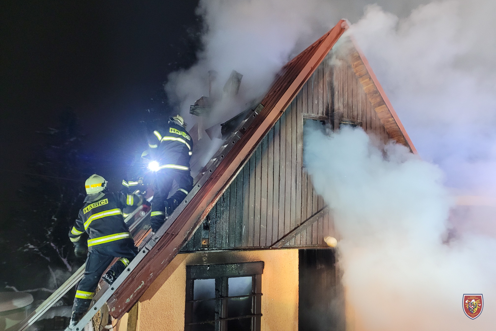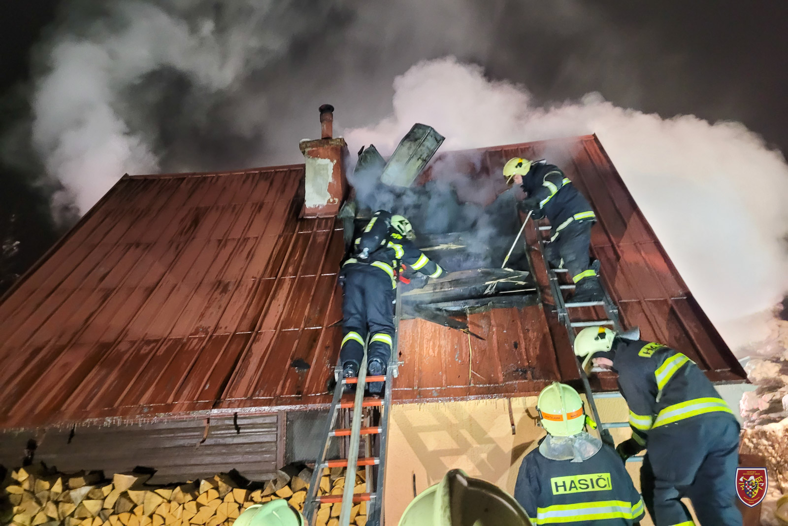 Čtyři hasičské jednotky zasahovaly ve středu 25. ledna 2023 večer u požáru chaty v Čeladné na Frýdecko-Místecku.