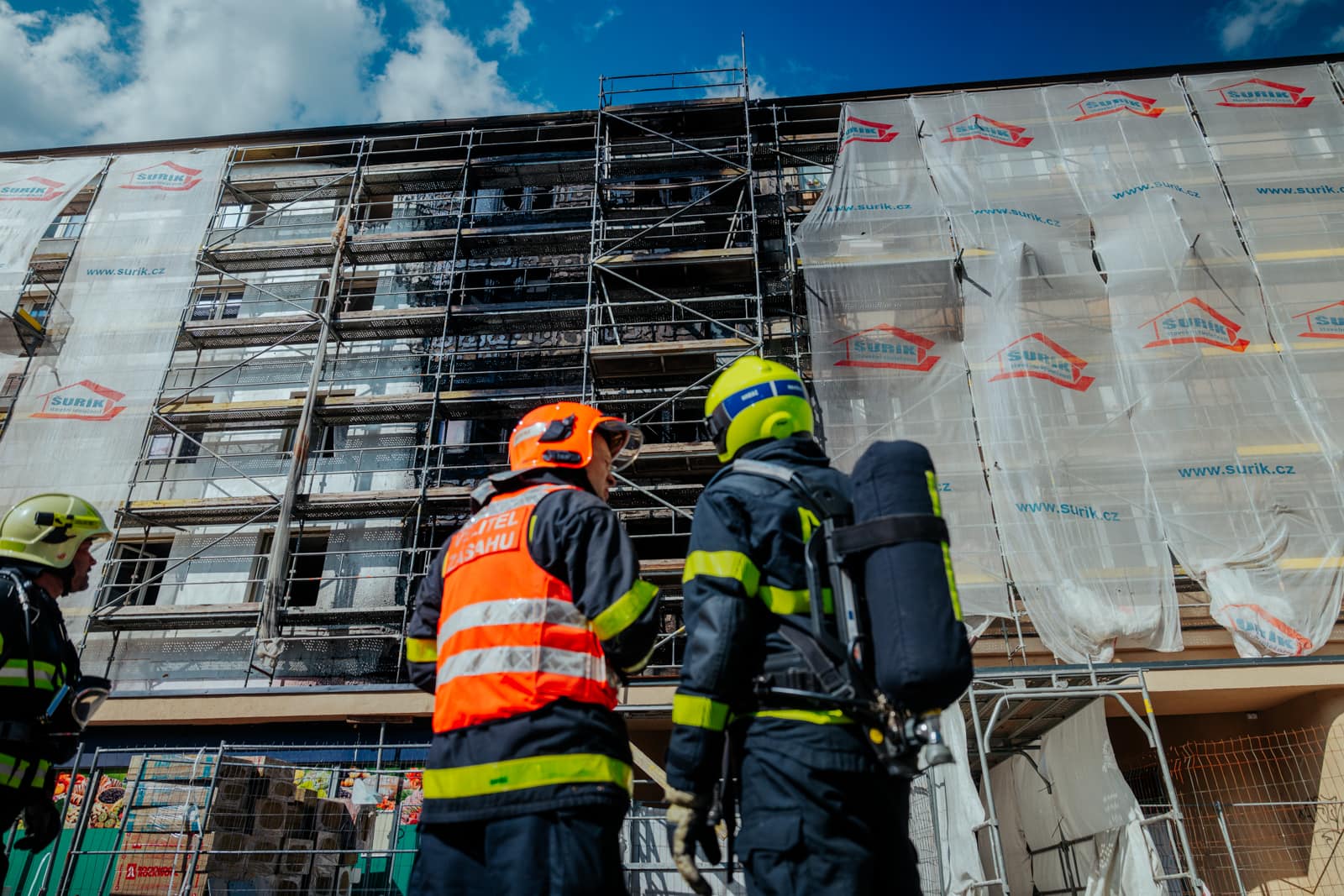 Po lokalizaci požáru hasiči rozebrali části vnějšího zateplení budovy, aby odhalili a uhasili skrytá ohniska.
