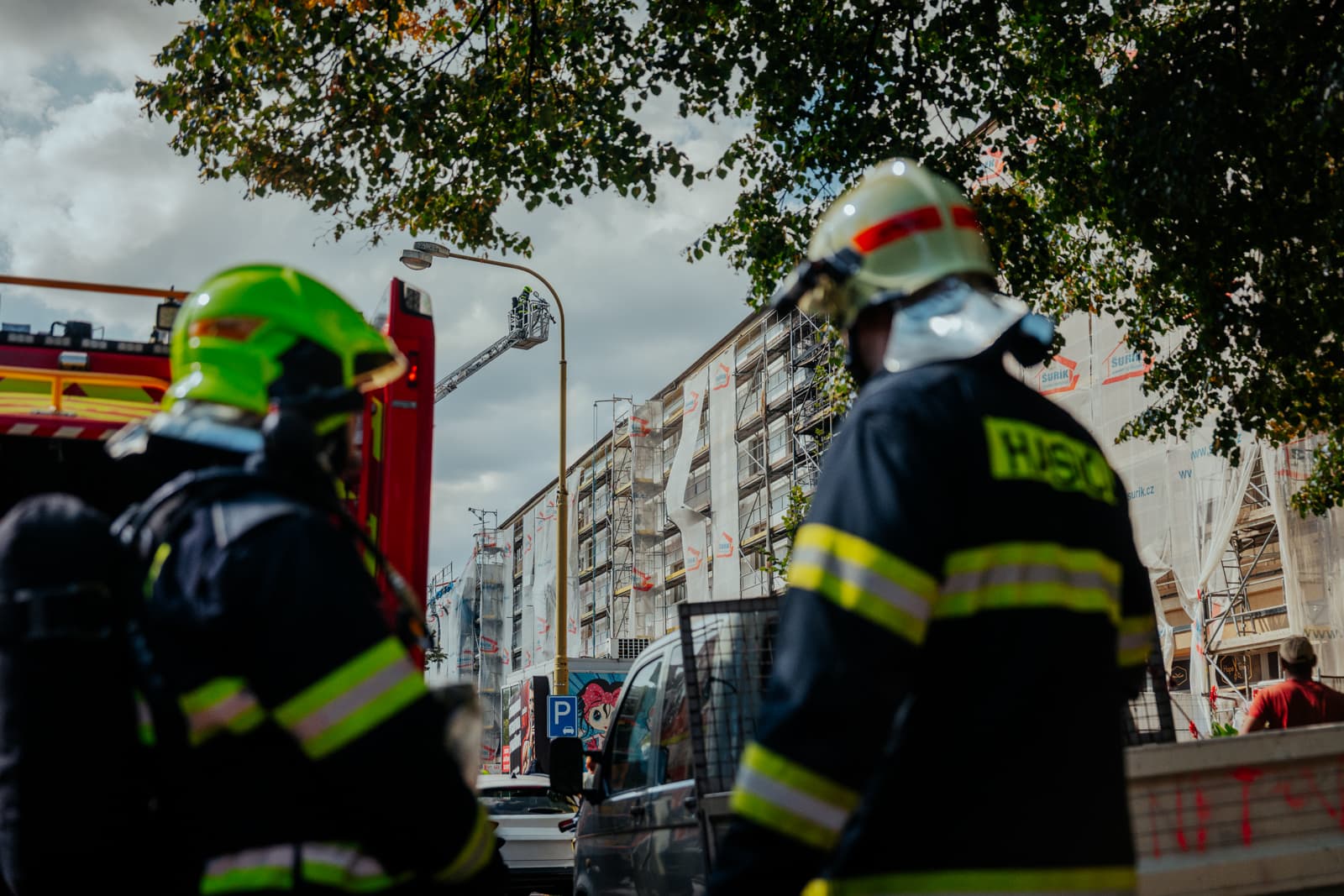 Hasiči zasahovali vnitřními cestami i zvenčí za pomoci výškové techniky. Během zásahu zachránili čtyři osoby, které vyvedli z budovy pomocí vyváděcích masek kvůli hustému kouři.