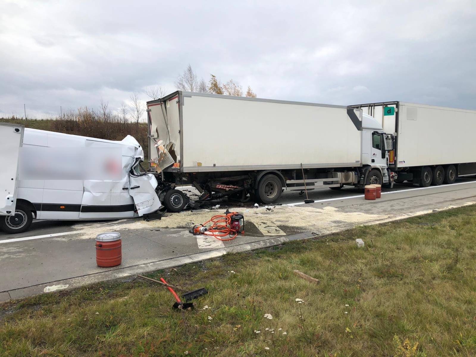 Při příjezdu jednotek na místo nehody bylo zjištěno, že v dodávce zůstal zaklíněn řidič. Hasiči ihned zahájili vyprošťovací práce za pomocí hydraulického vyprošťovacího zařízení. Krátce po zahájení vyprošťovacích prací na místě přistál vrtulník záchranné služby Moravskoslezského kraje, jehož lékař ale konstatoval u řidiče zranění neslučitelná se životem, a proto velitel zásahu přerušil vyprošťovací práce až do doby vyšetření a zadokumentování nehody Policii ČR.