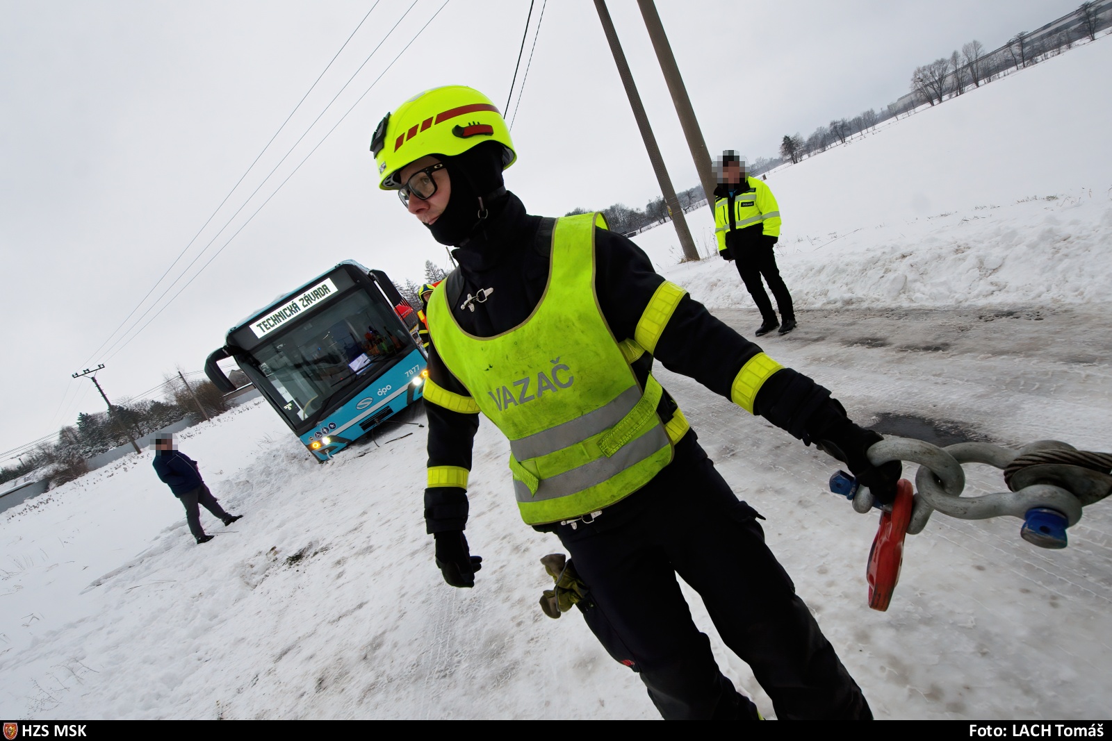 Hasiči ve většině případů tahali ze závějí a příkopů autobusy, kamiony, sypače a osobní automobily. Hasiči tak například pomáhali ve 22 případech autobusům, nebo 10 kamionům. Jeden kamion dnes zablokoval na krátkou dobu dálnici D1 na 330 km ve směru na Ostravu, kde mu profesionální hasiči z Bílovce a Nového Jičína museli pomoci dostat se od svodidel, kam se dostal po smyku.