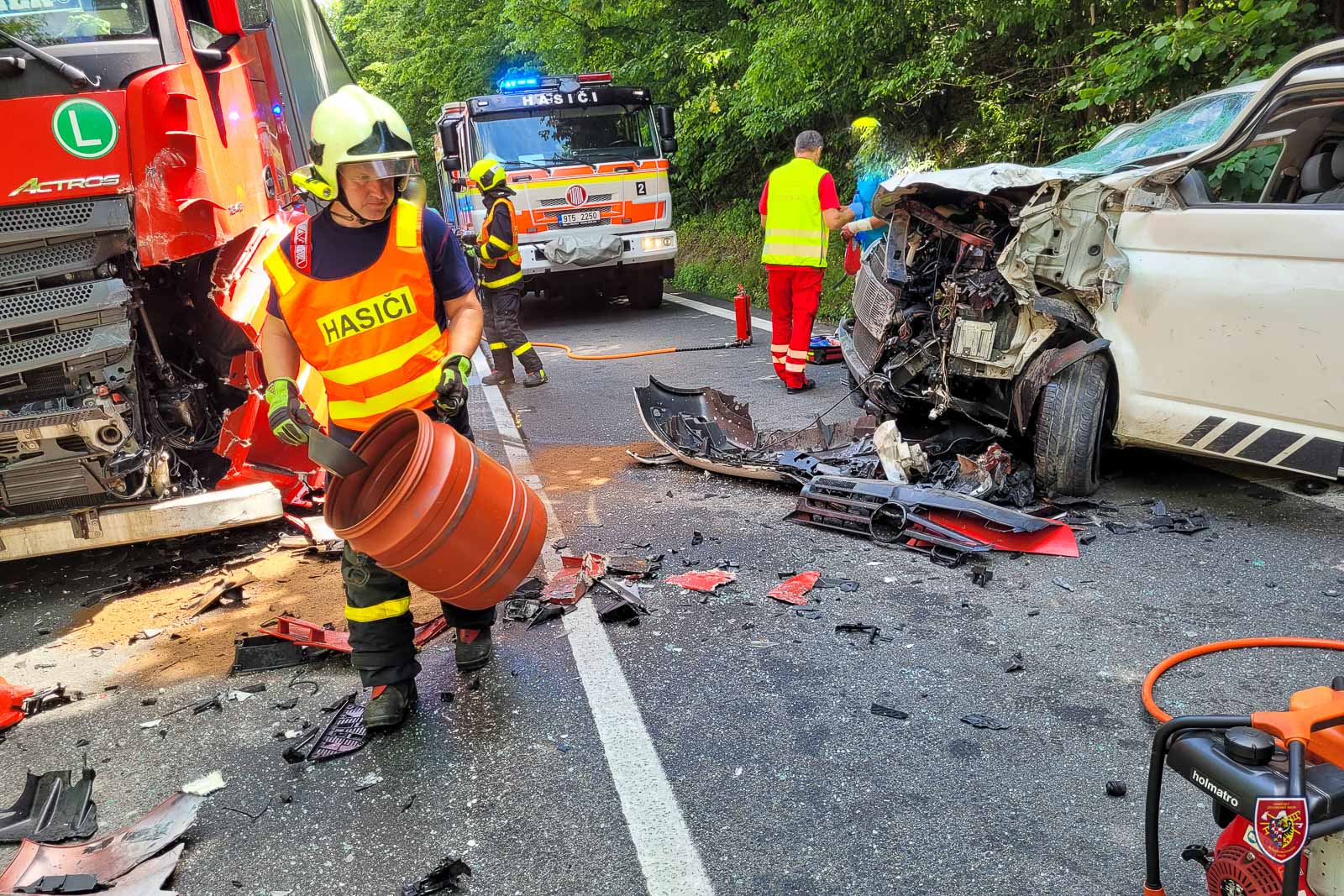 Ti po příjezdu na místo události poskytli předlékařskou první pomoc lehce zraněnému řidiči dodávky, následně ho předali do péče přivolaných zdravotníků.