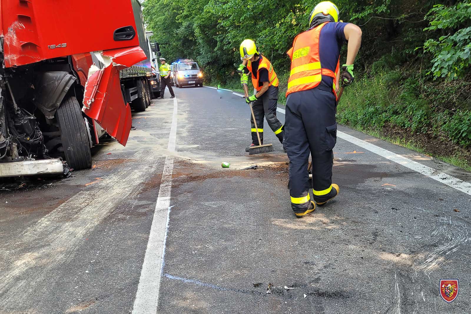 Únik provozních kapalin jednotky zasypaly sorbentem.