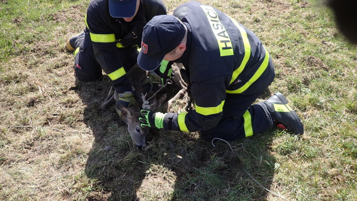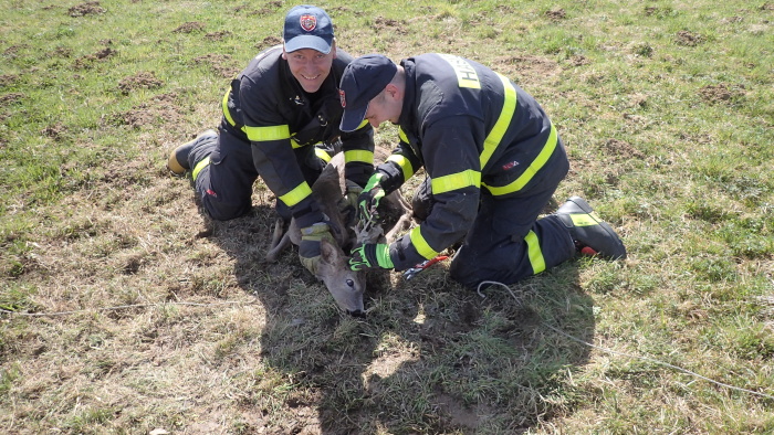 Těšínští hasiči zachraňovali dva srnce z elektrického ohradníku