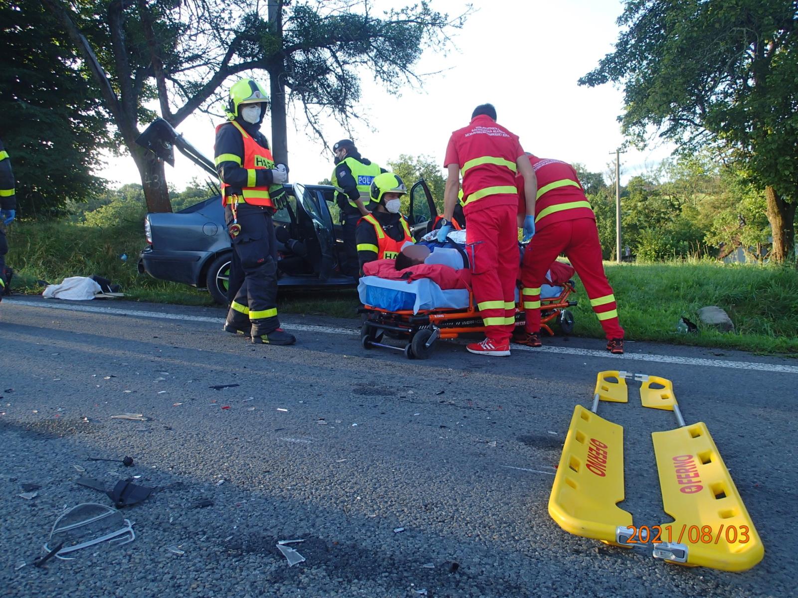 Po příjezdu jednotek na místo události hasiči ihned zajistili obě havarovaná vozidla proti pohybu a požáru. Na místě nehody zůstaly celkem tři zraněné osoby. Jedna osoba se nacházela při příjezdu hasičů již mimo vozidlo. Další dvě osoby zůstaly v havarovaných vozidlech, a tak se hasiči postarali o jejich záchranu bez pomoci vyprošťovacího zařízení.