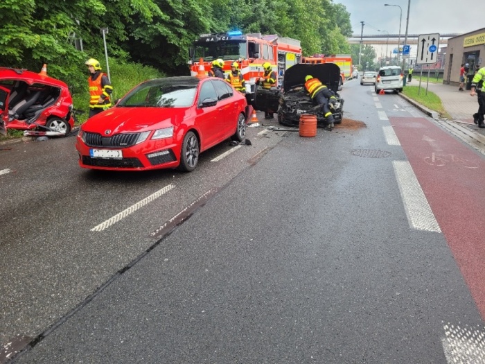 Profesionální hasiči z Třince (HZS MSK) zasahovali ve středu 25.5.2022 ráno a dopoledne v třinecké Nádražní ulici, kde se střetly...