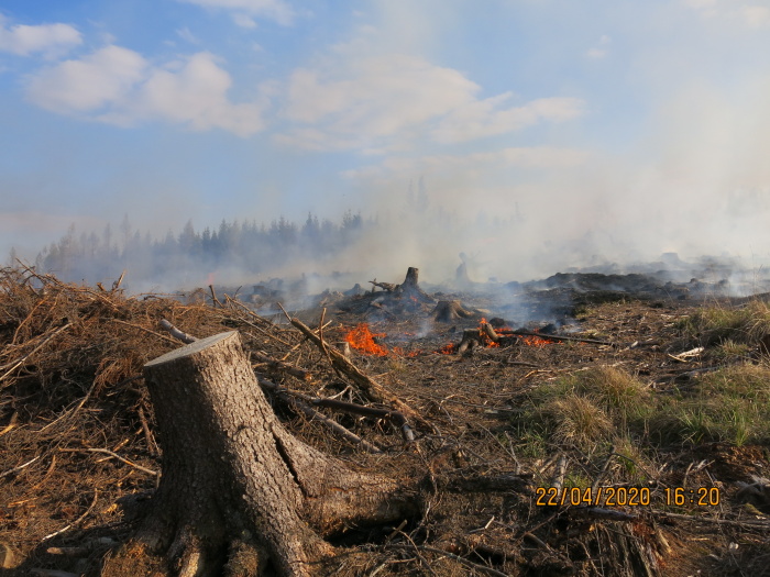 Čtrnáct jednotek hasičů zasahovalo ve středu 22.4.2020 odpoledne až do noci u požáru lesa u obce Razová (okres Bruntál). Hořelo téměř na sedmi hektarech, požár se obešel bez zranění. Předběžná škoda byla odhadnuta na půl milionu korun, příčina jeho vzniku je v šetření. S hašením v náročném terénu a za silného větru pomáhal policejní vrtulník.