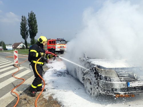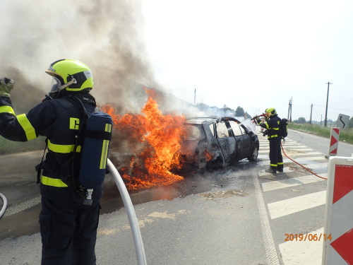 Už při příjezdu hasičů hořel renault silným plamenem. Uhasili jej za 14 minut.