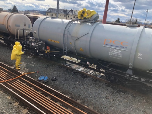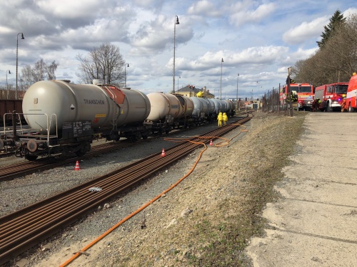 Operační středisko hasičů bylo o úniku HCl informováno ve čtvrtek krátce před druhou hodinou odpolední. Na bruntálské nádraží vyjela jednotka Hasičského záchranného sboru Moravskoslezského kraje (HZS MSK) ze stanice Bruntál, společně s ní dvě jednotky dobrovolných hasičů - Bruntál a Krnov, a také drážní hasiči (SŽDC).