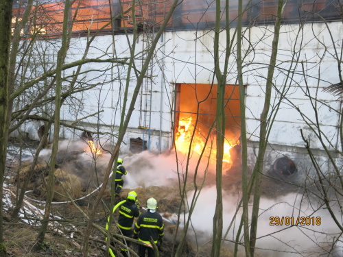Celkem osm jednotek hasičů zasahovalo od pondělního odpoledne 29.1.2018 v obci Světlá Hora (okres Bruntál) u požáru haly s uskladněnými 1600 balíky lisovaného sena, který se nechává po dohodě s majiteli dohořet pod bedlivou kontrolou hasičů. Podle hrubého odhadu by mohl být oheň uhašen během středy či až čtvrtku.