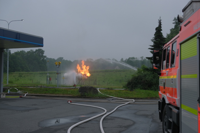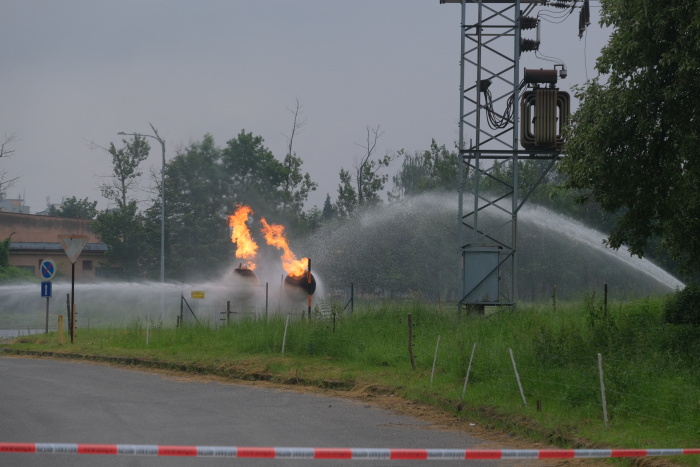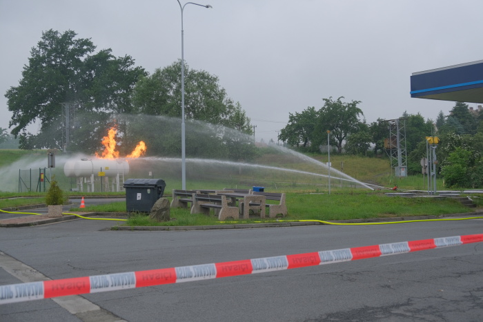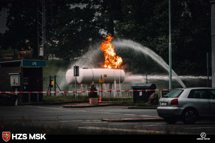 Deset jednotek profesionálních a dobrovolných hasičů zasahuje od čtvrtečního rána 18.6.2020 až dosud v Českém Těšíně (okres Karviná) u požáru dvou nadzemních zásobníků na zkapalněný propan butan (LPG) v blízkosti čerpací stanice pohonných hmot. Zásobníky hasiči nechávají kontrolovaně dohořívat, smůla je, že v pondělí byly doplněny na 80 procent objemu. Zásah tak může trvat ještě několik hodin.
