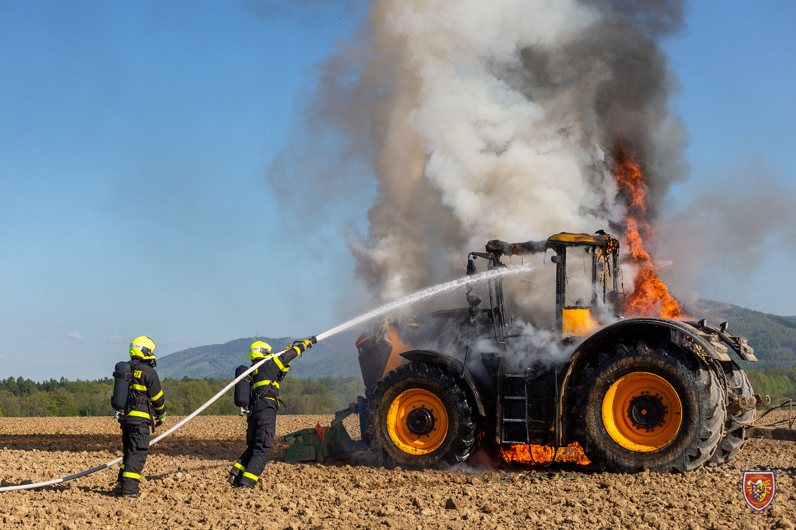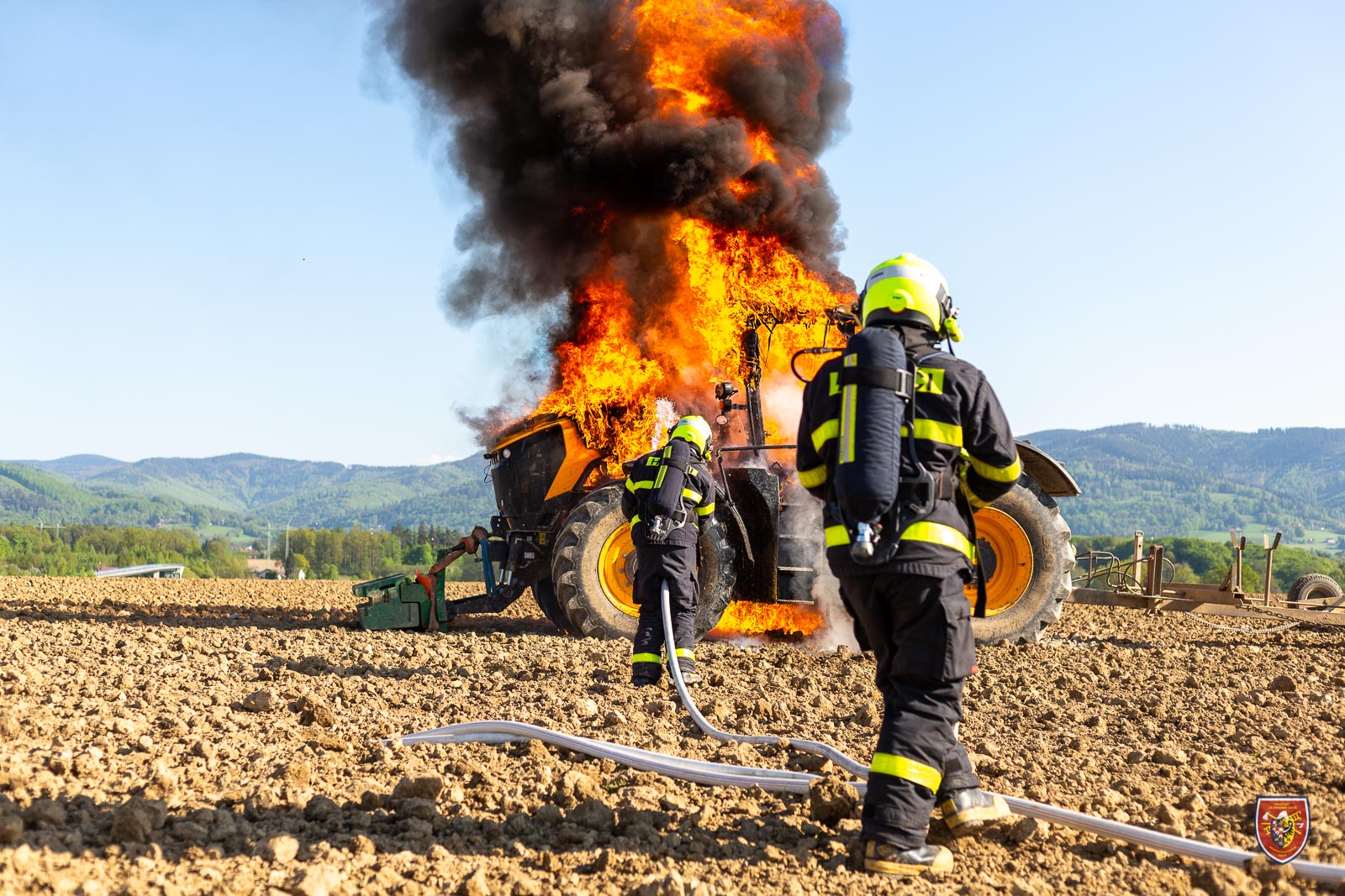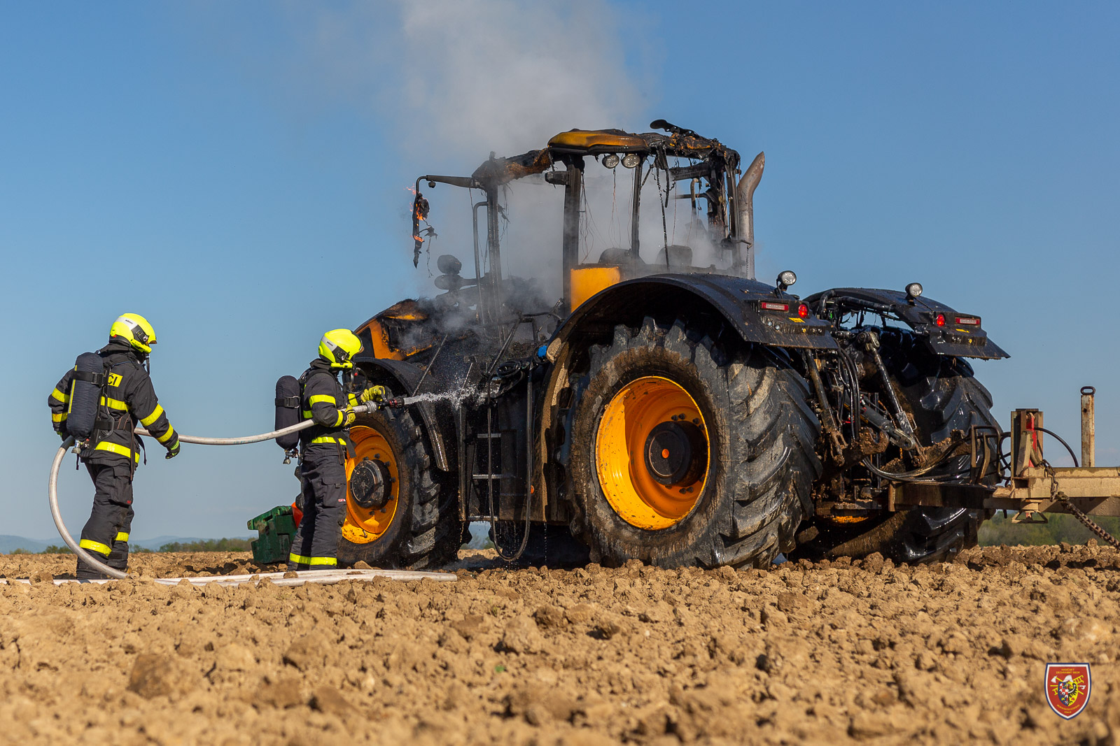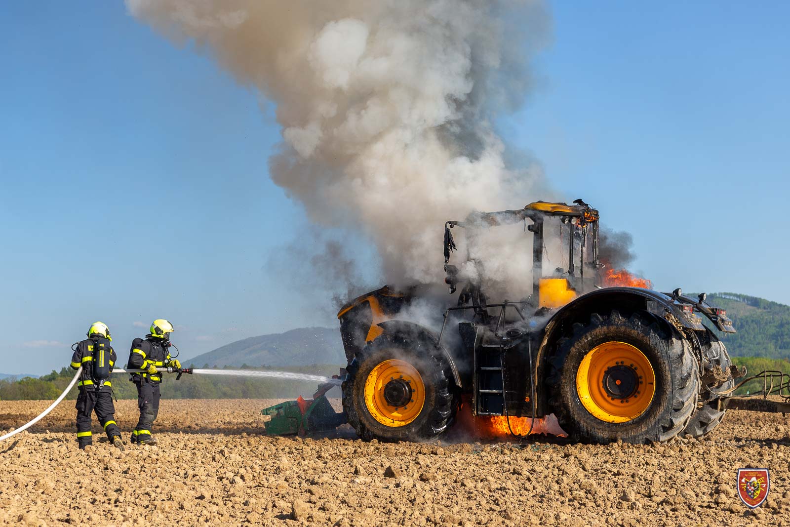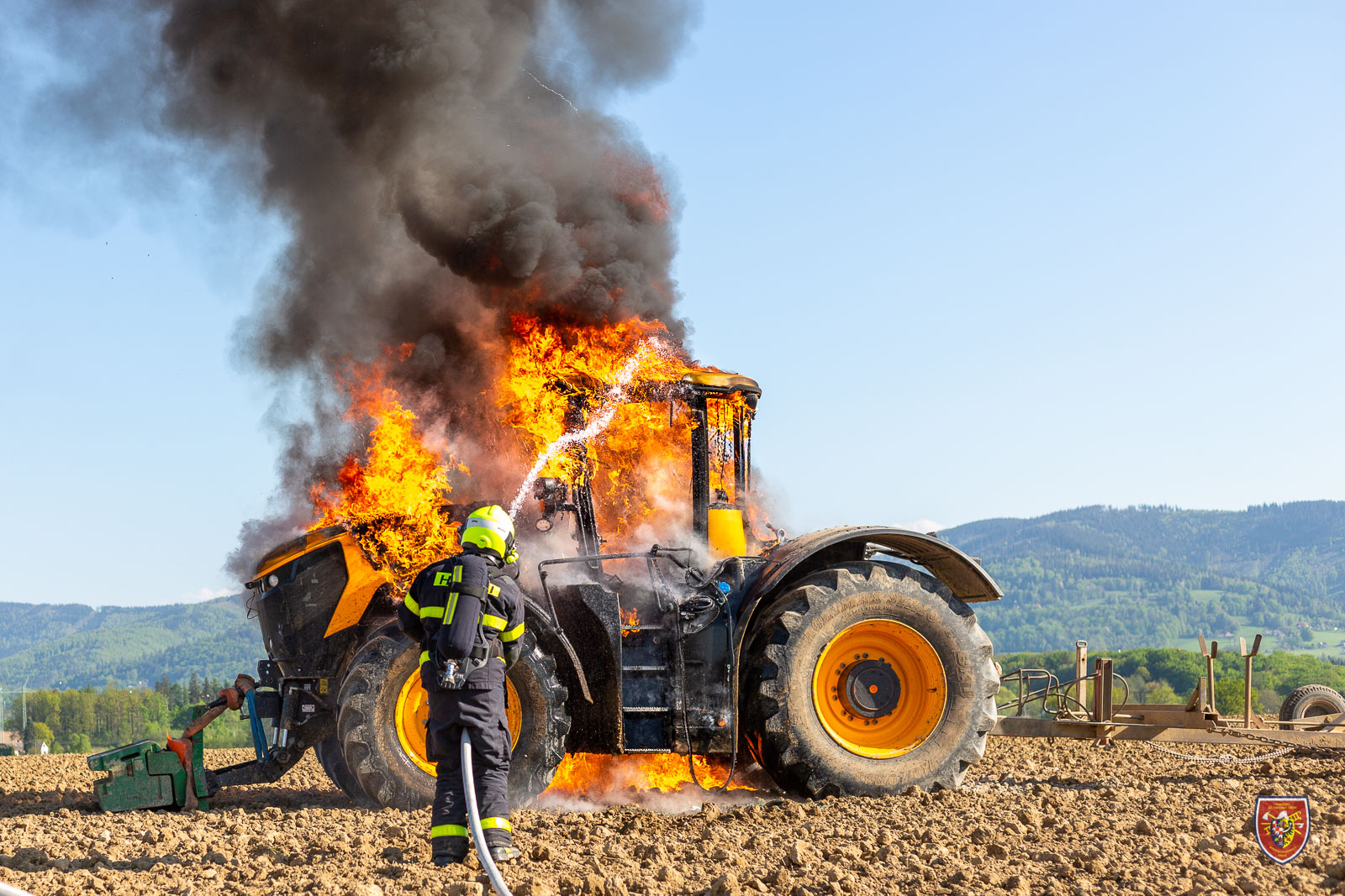 V úterý 10. května 2022 odpoledne byly vyslány čtyři jednotky hasičů k požáru traktoru JCB na poli v Horních Tošanovicích na Frýdecko-Místecku.