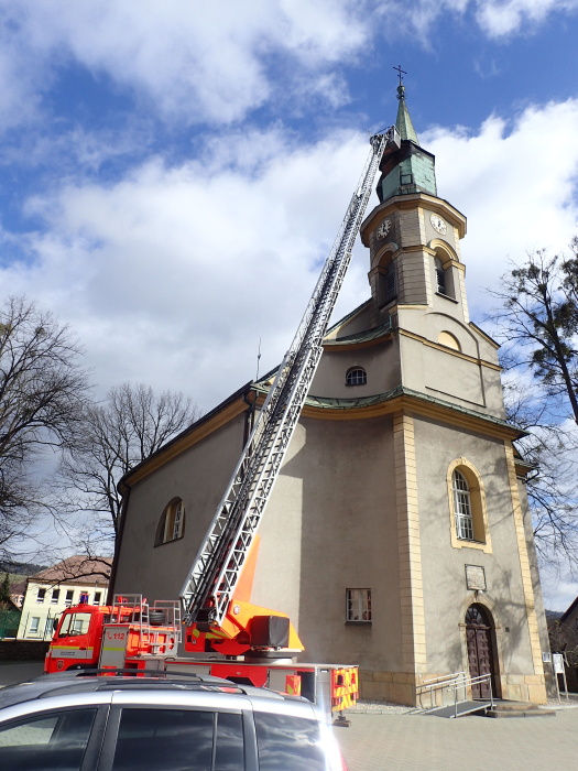 Nejvíce výjezdů – 43 – mají na kontě hasiči v okrese Frýdek-Místek. Například v pondělní poledne – po částečném uklidnění větrných poryvů – mohla vyjet jednotka HZS Moravskoslezského kraje ze stanice Třinec do Návsí i s automobilovým žebříkem spravovat utrženou krytinu na věži zdejšího evangelického kostela. Pomáhat přijela i místní jednotka dobrovolných hasičů z Návsí. Pomocí nástrojů, zapůjčených klempířskou firmou, hasiči měděný plech provizorně připevnili.