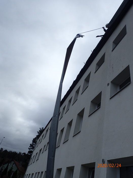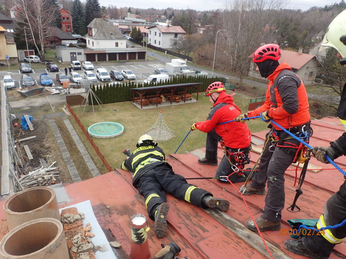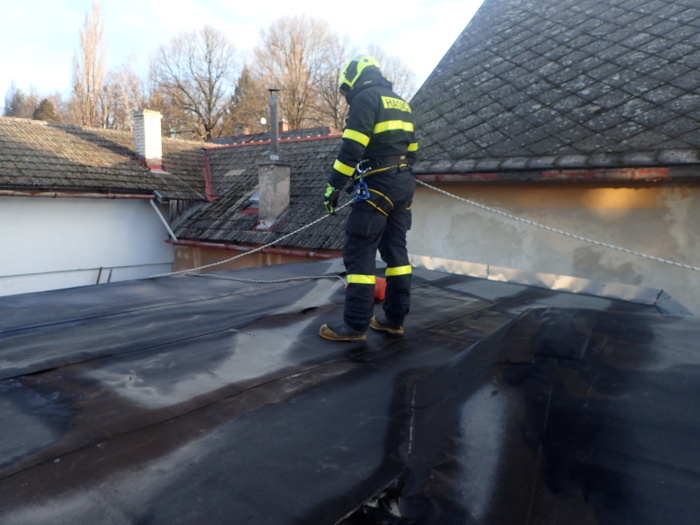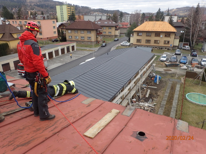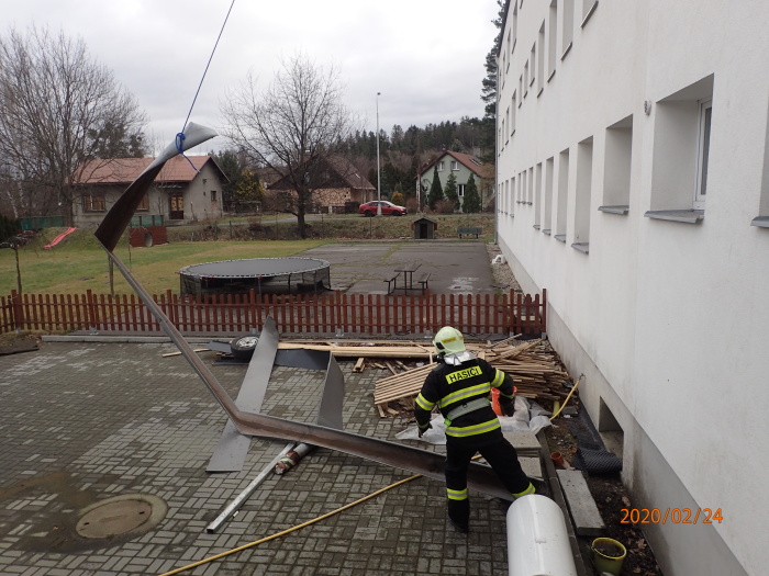 Jednotka HZS Moravskoslezského kraje ze stanice Frýdek-Místek a jednotka SDH Frýdlant nad Ostravicí zasahovaly u utržených střešních plechů na objektu uvnitř města (dole je mj. mateřská škola, nahoře byty).