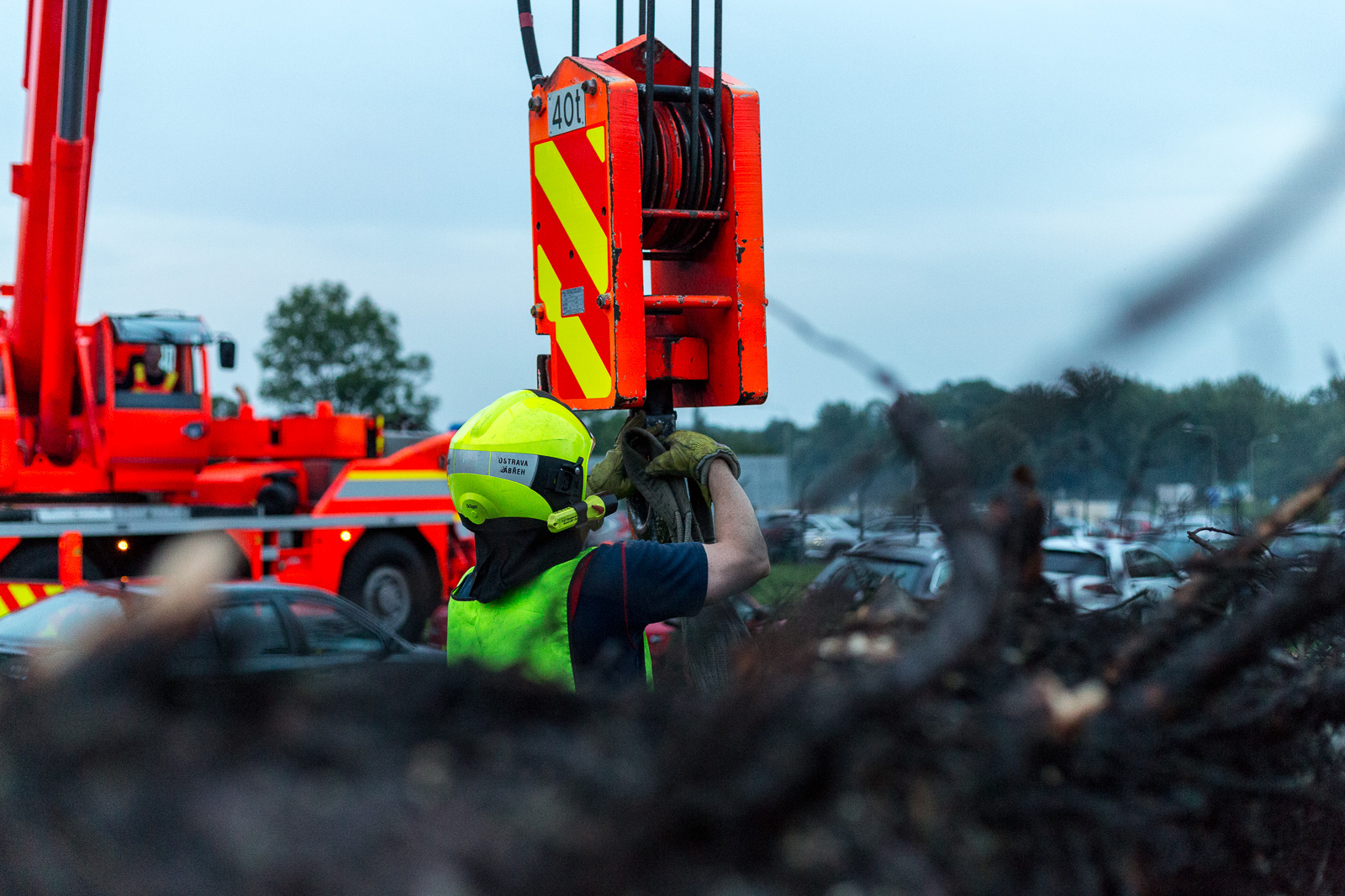 Pro sundání jednoho z automobilů a závěrečné odstranění kmene si velitel zásahu na místo povolal těžkotonážní jeřáb Terex Demag ze stanice HZS MSK v Ostravě-Zábřehu.