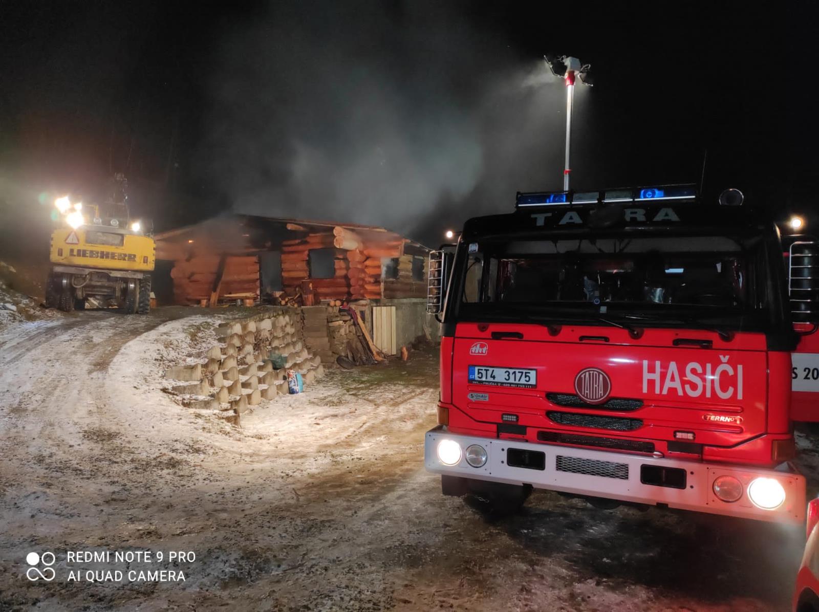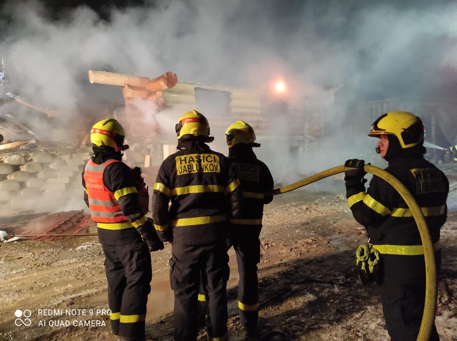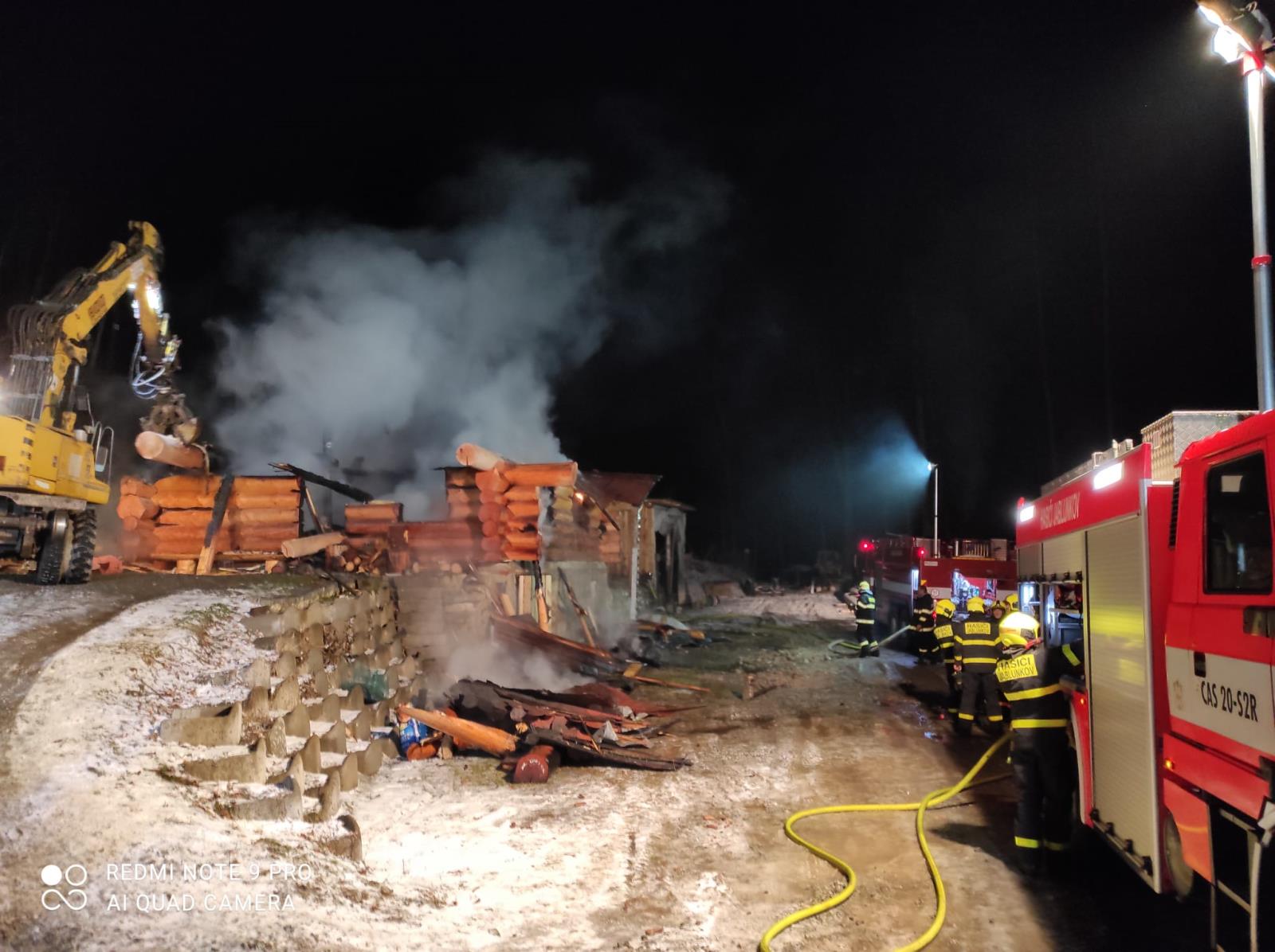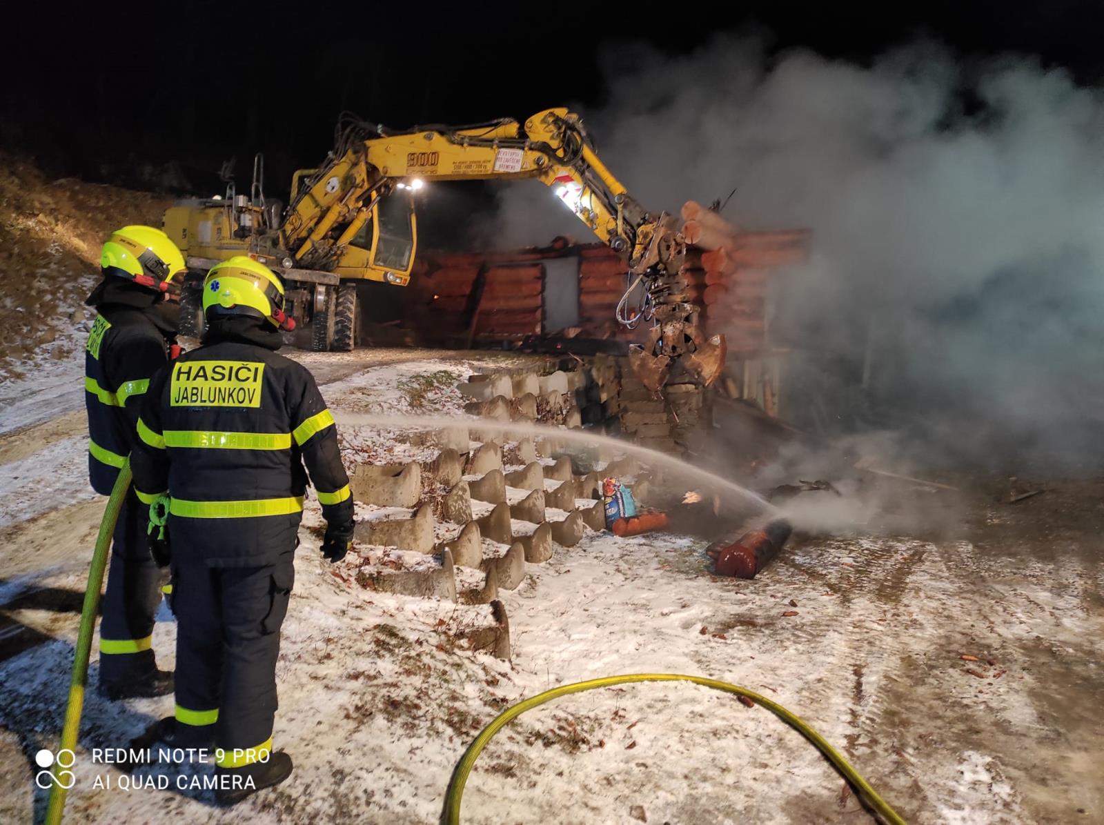 Pět hasičských jednotek zasahovalo ve čtvrtek 13. ledna 2022 v podvečer u požáru rozestavěného srubu v lokalitě pod vrcholem Filipka v Návsí na Frýdecko-Místecku.