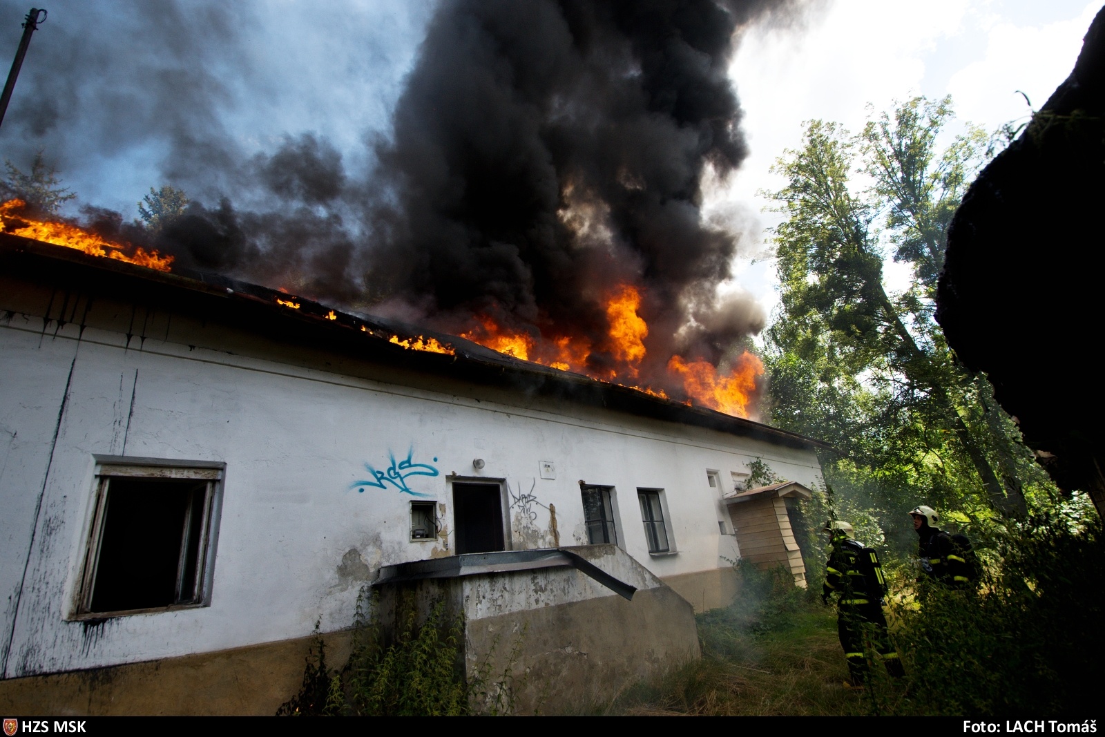 Při příjezdu první jednotky k události byla celá střecha již v plamenech. Velitel hasičů si ihned na místo povolal další jednotky a k hašení sedlové střechy nasadil pět vodních proudů. Během požáru došlo i ohoření kabelů elektrické energie, která vedla k domu, takže na místo museli vyrazit i technici společnosti, které vedení patřilo. Během zásahu hasiči současně prováděli uvnitř budovy průzkum, aby se ujistili, že ve vybydlené budově se nikdo nenachází. Hasiči naštěstí uvnitř budovy nikoho nenalezli a mohli se tak plně věnovat hašení střechy budovy.