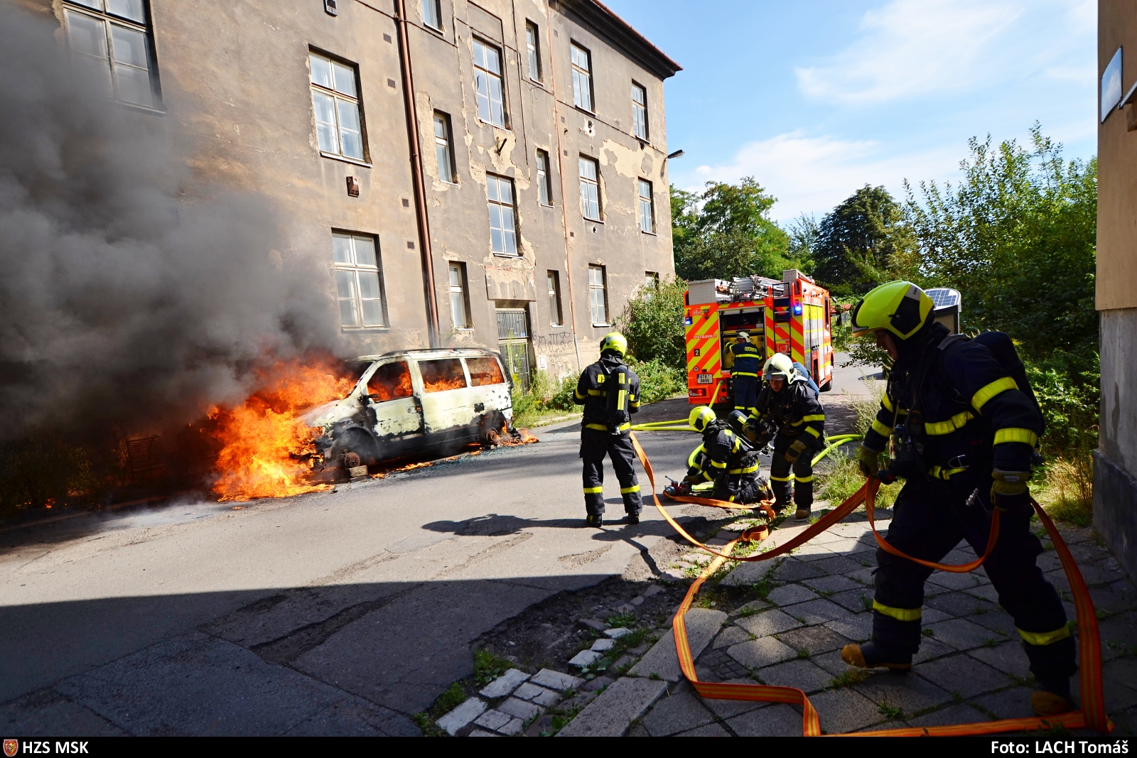 Hasiči zasahovali ze stanice HZS MSK Ostrava-Fifejdy u plně rozvinutého požáru dodávkového automobilu Mercedes-Benz Vito. Požár byl...