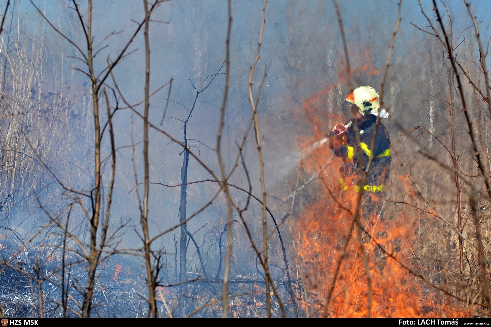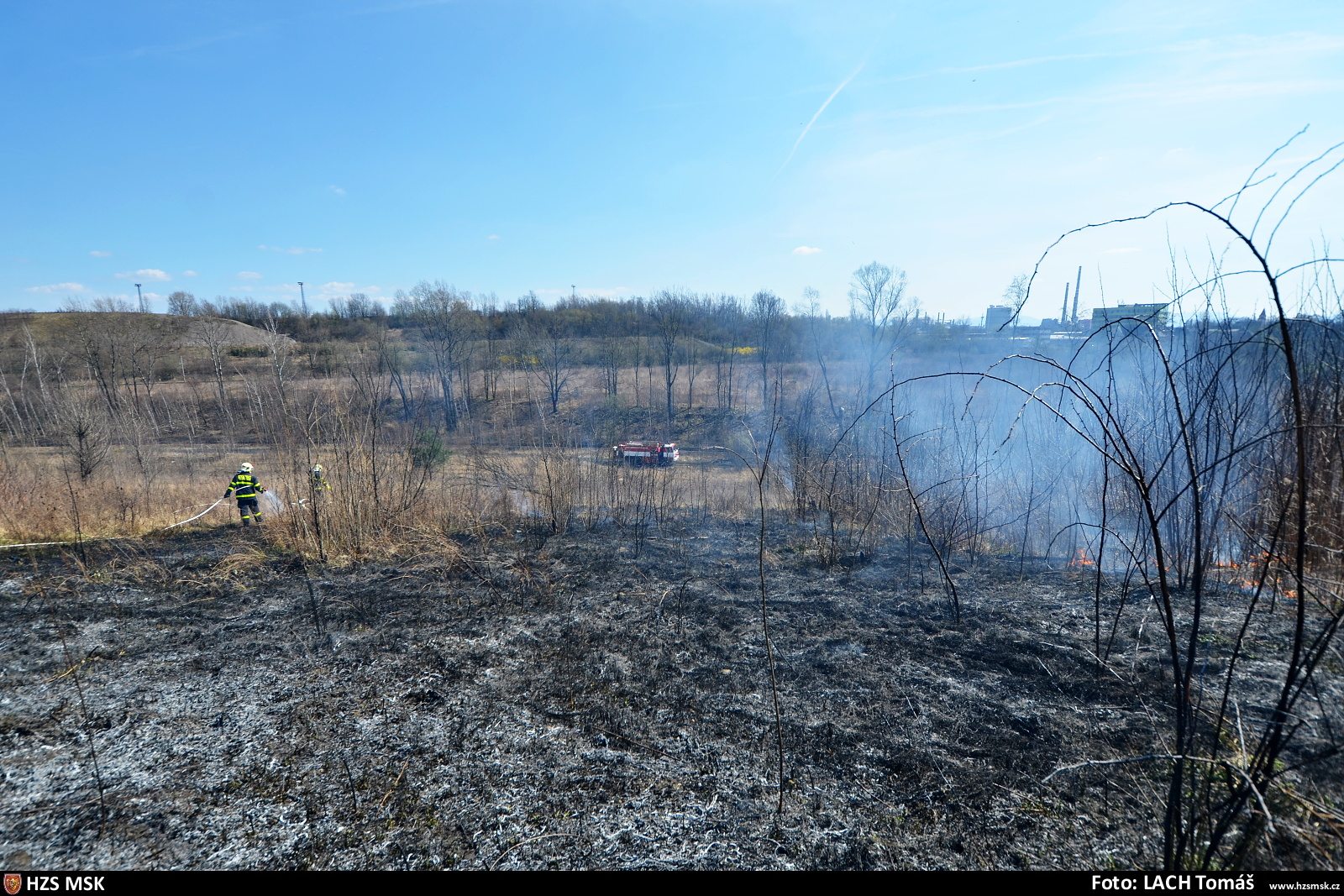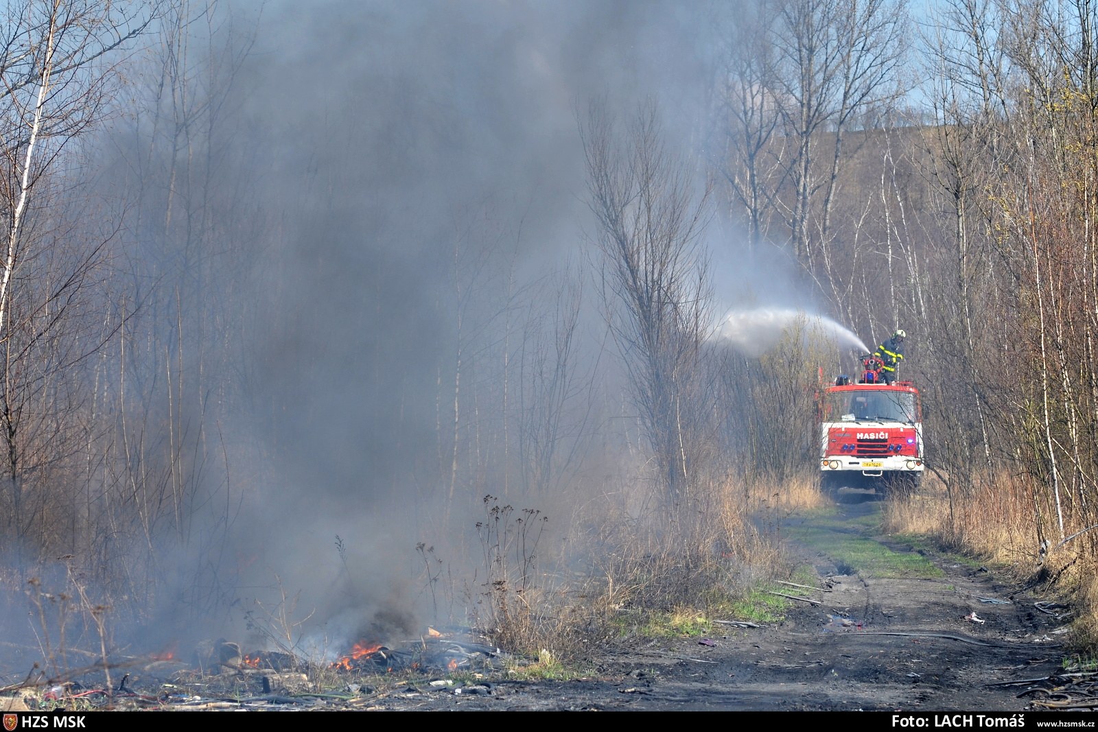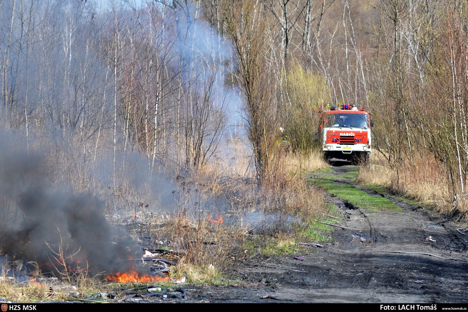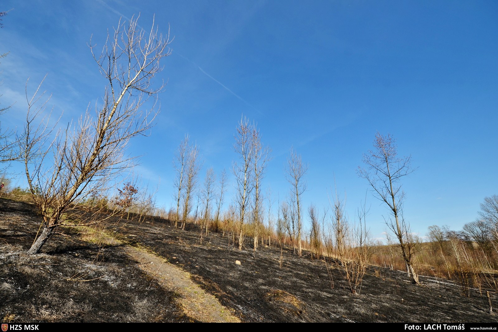 V poslední březnový den zasahovalo 6 jednotek hasičů u požáru suché trávy, odpadu, náletových dřevin a keřů ve Slezké Ostravě na místní haldě.