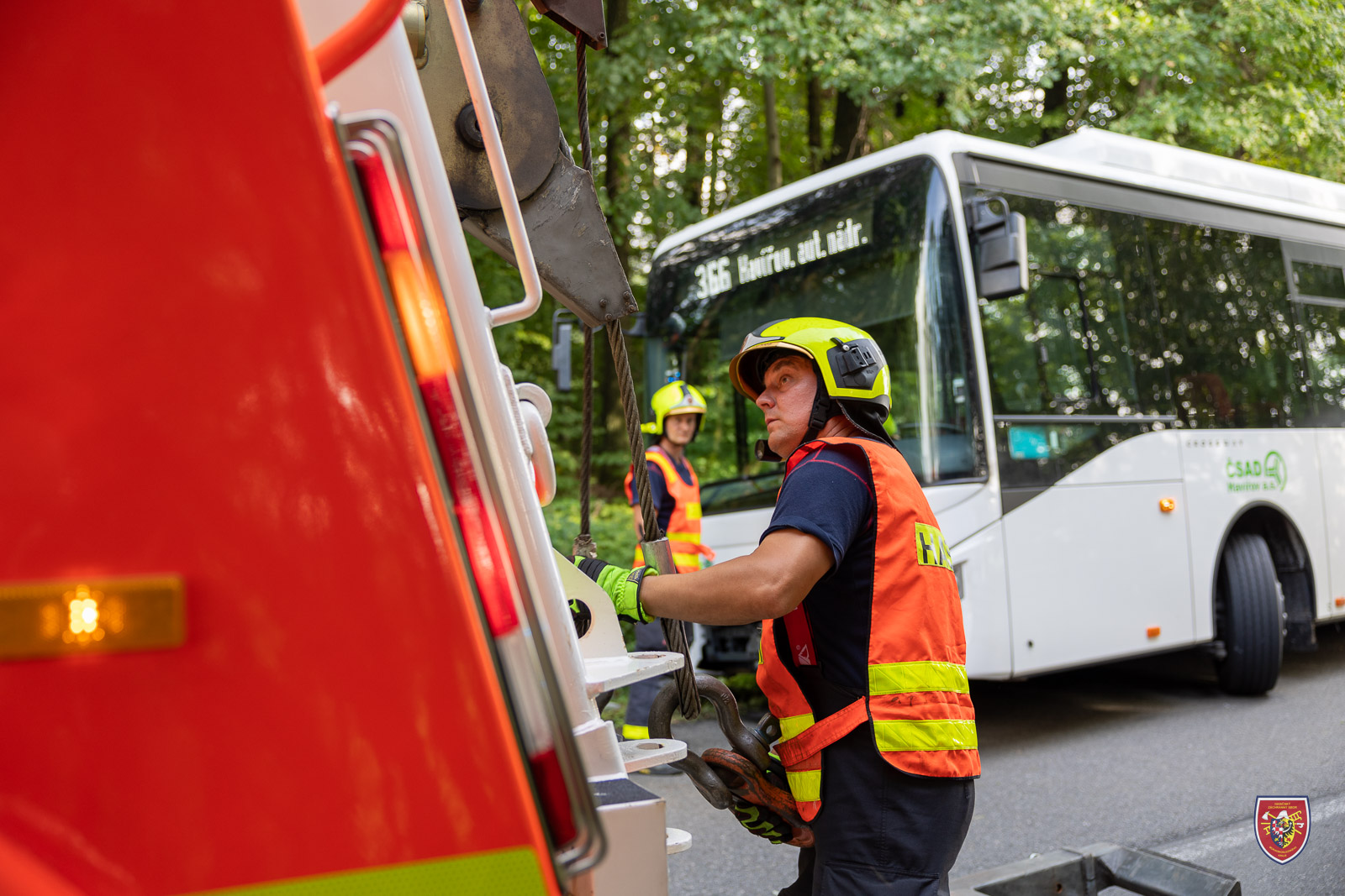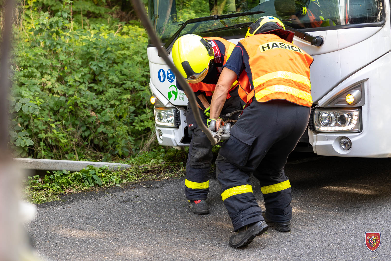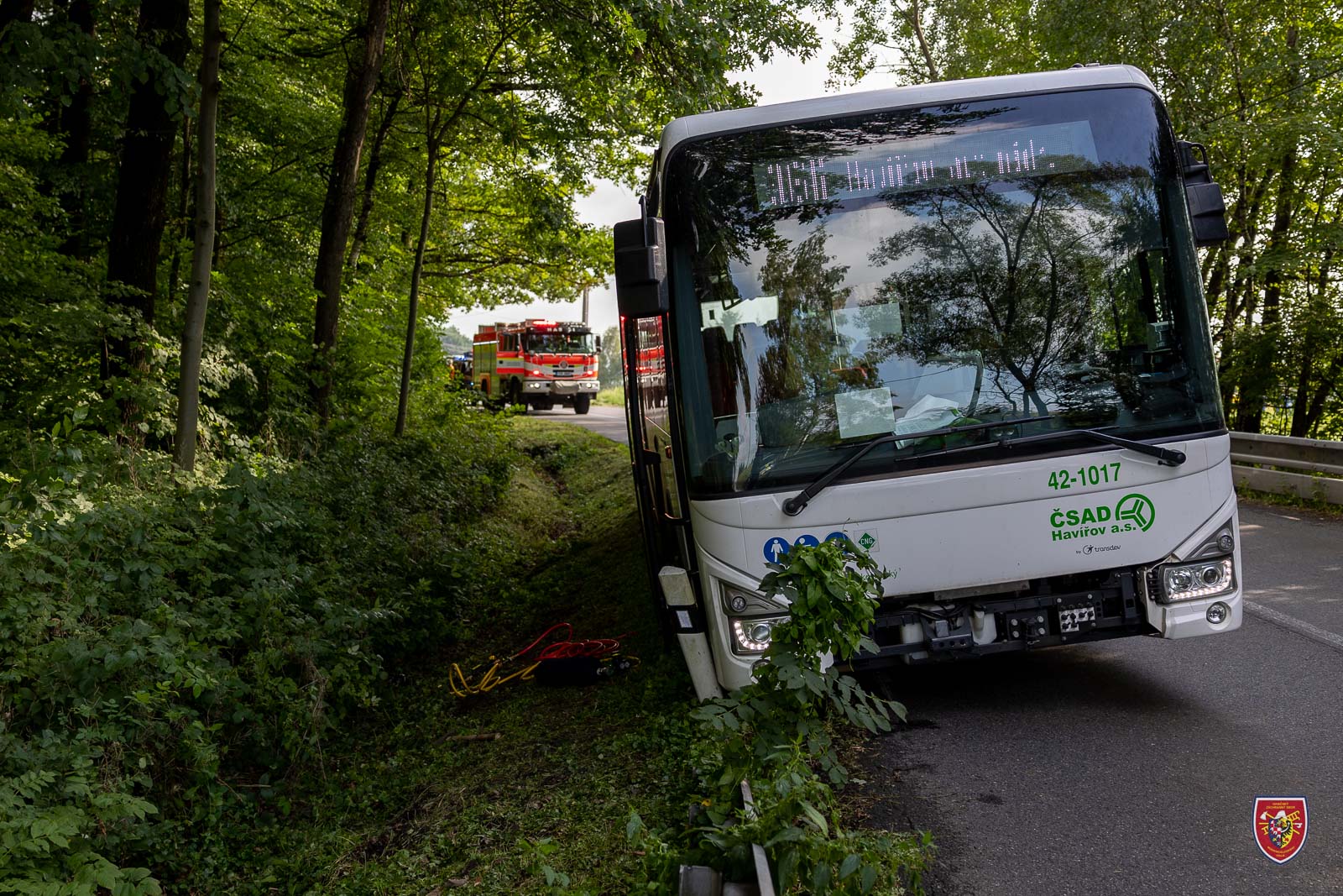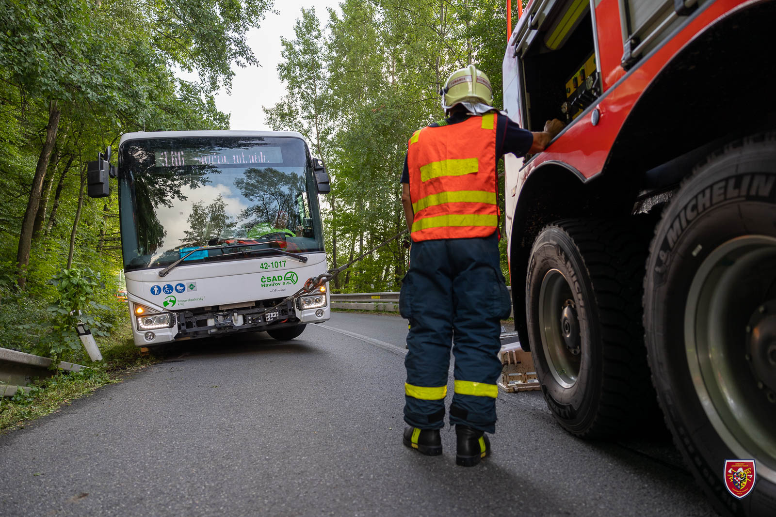 Dvě jednotky profesionálních hasičů Hasičského záchranného sboru Moravskoslezského kraje (HZS MSK) se v úterý 23. srpna 2022 odpoledne zapojily do vytažení autobusu, který vyjel v Pazderně mimo komunikaci.