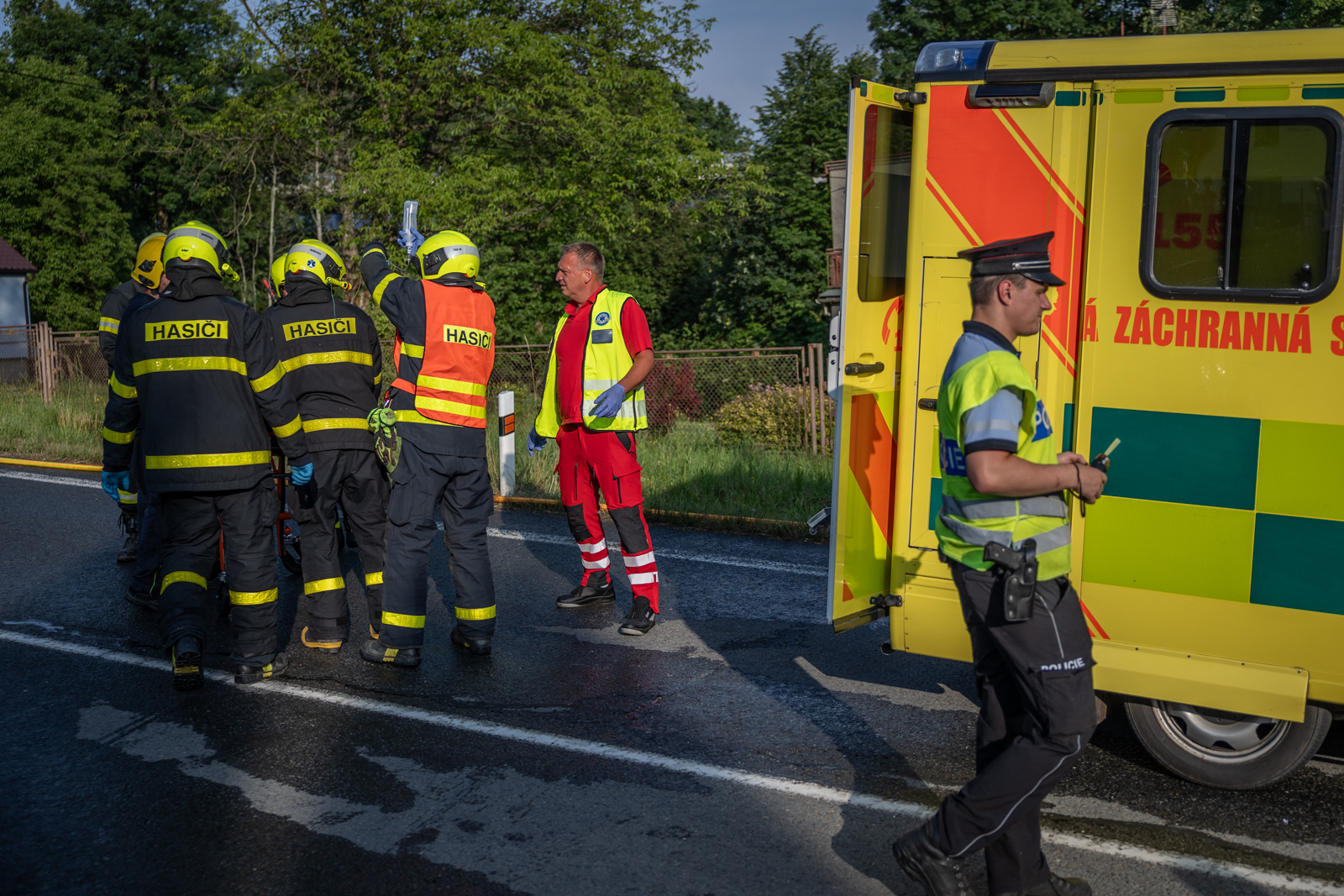 Tři jednotky hasičů zasahovaly v sobotu 1. července 2023 v podvečer u dopravní nehody osobního automobilu a motocyklu v Třanovicích na Frýdecko-Místecku.