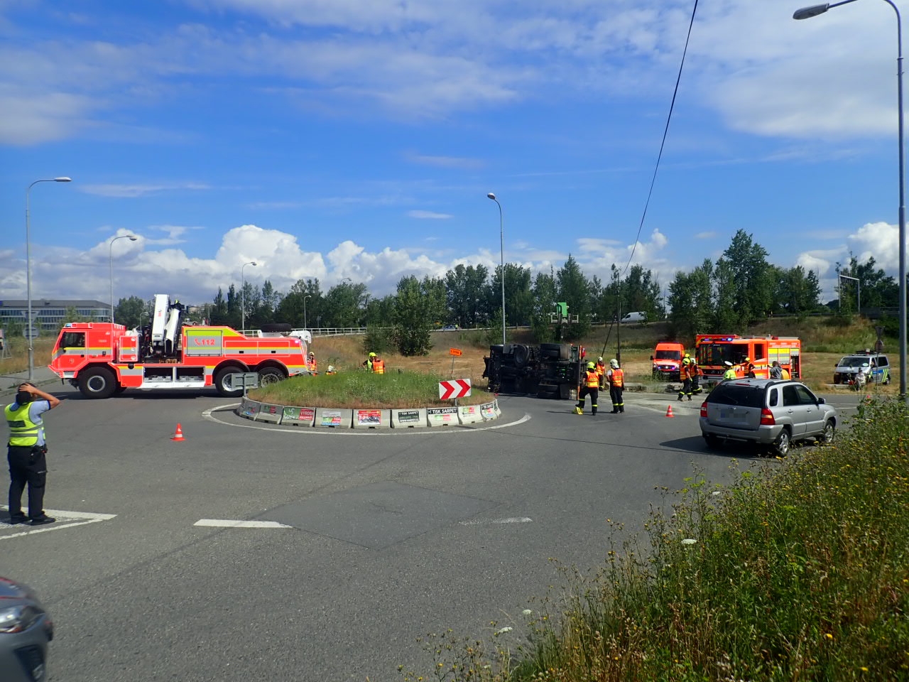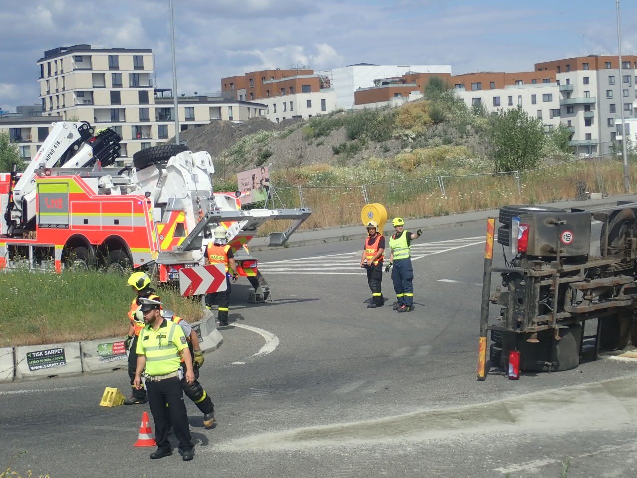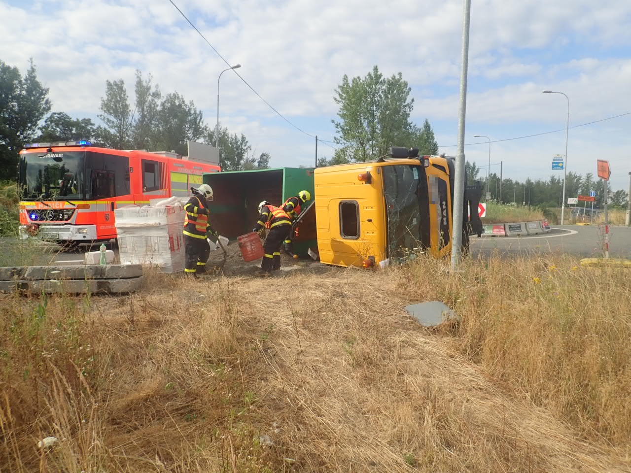Ti po příjezdu k nehodě zjistili, že se nákladní automobil převrátil na kruhovém objezdu a uniká z něj nafta. Řidič byl zraněn, do nemocnice ho odvezla Zdravotnická záchranná služba.