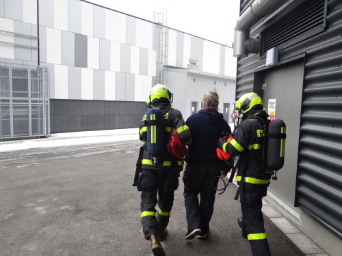 Prvotní průzkum zasažené oblasti zajistili dva profesionální hasiči v dýchací technice a s měřicími přístroji, které jsou ve výbavě jednotky. Uvnitř haly nalezli a zachránili intoxikovaného muže z rozvodny, kterého předali týmu zdravotnických záchranářů ZZS MSK.