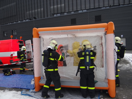 Sedm jednotek profesionálních (HZS MSK) a dobrovolných hasičů zasahovalo v úterý 31.1.2017 v hokejové části multifunkční haly Polárka ve Frýdku-Místku při záchraně dvou zraněných osob a zamezení dalšího úniku amoniaku ze strojovny chlazení do ovzduší. U taktického cvičení hasiči spolupracovali s dalšími složkami integrovaného záchranného systému (IZS) - ZZS MSK, Policií ČR a Městskou policií Frýdek-Místek.