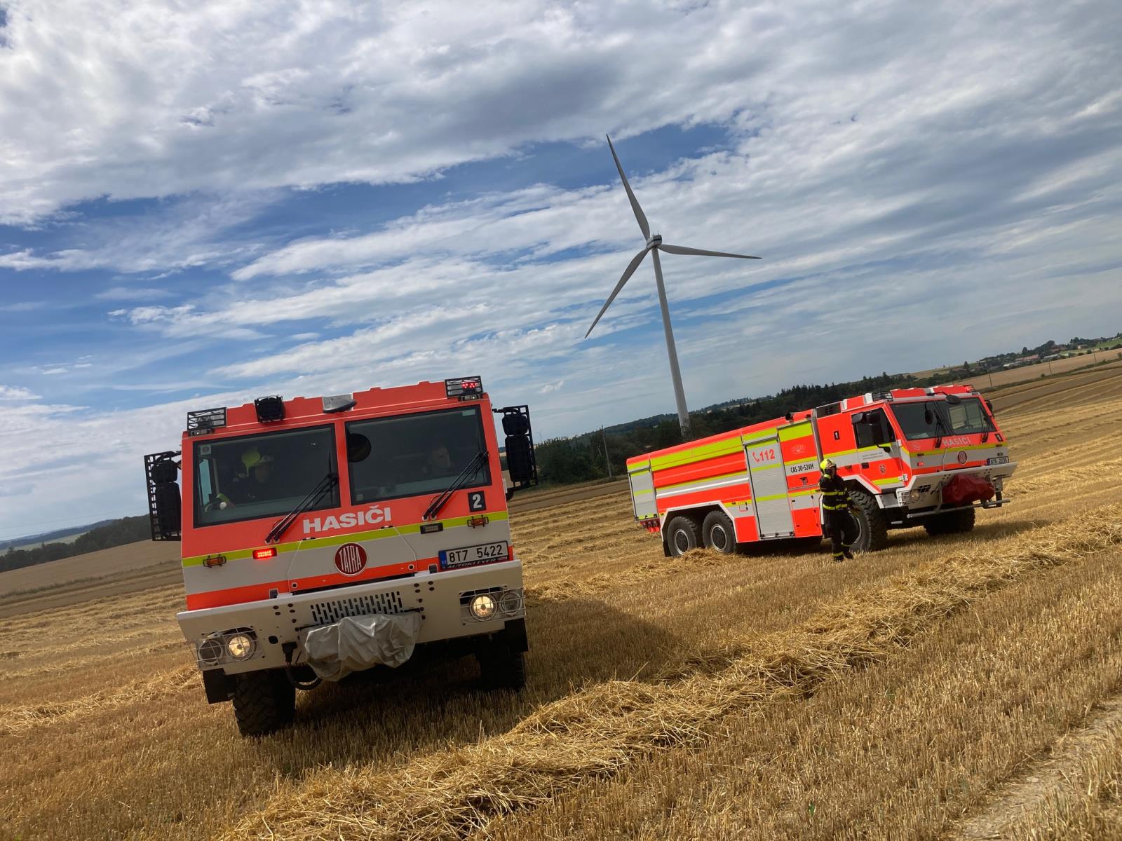 Pět jednotek hasičů zasahovalo ve čtvrtek 14. července 2022 odpoledne u požáru pole v Odrách - Veselí.