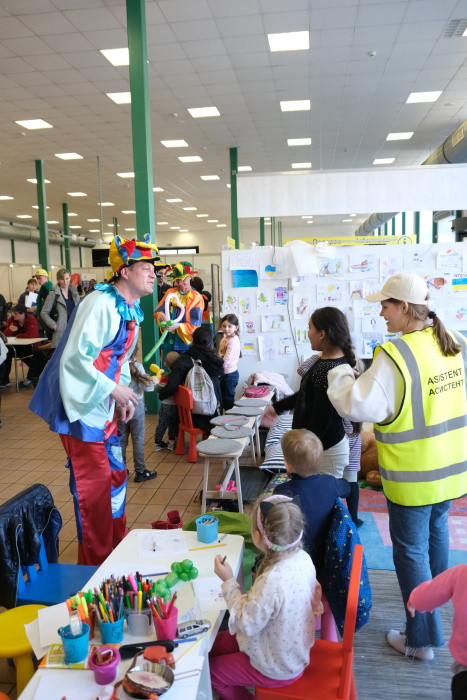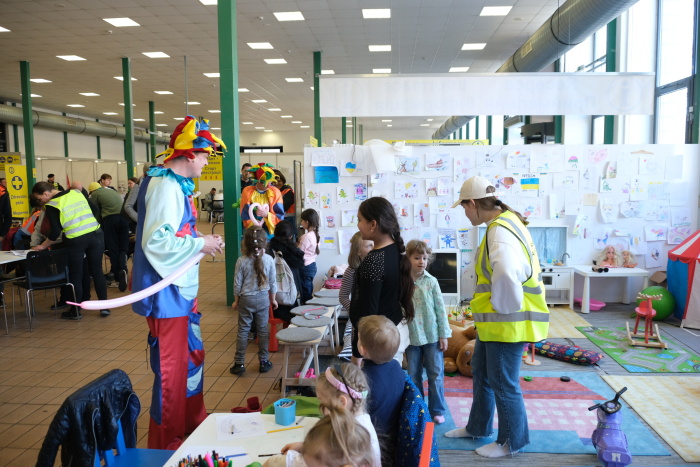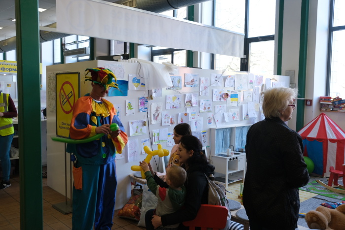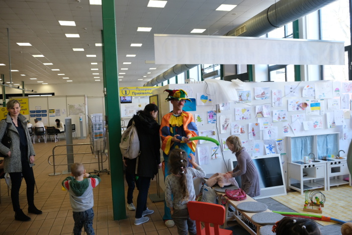 O přidělování ubytování, což je podmínka pro policejní registraci a získání víza, i o chod celého centra se zde starají příslušníci Hasičského záchranného sboru Moravskoslezského kraje (HZS MSK). Mezi žadateli jsou hlavně matky s dětmi, o jejich zábavu se vedle dvou dobře vybavených dětských koutků starají čas od času zábavní klauni – byli zde jak Zdravotní klauni, tak v pondělí 28.3. Klauni z Balónkova, včetně jejich principála Chytrolína. Jazykové bariéry okamžitě padly, např. při foukání a modelování balonků nejrůznějších tvarů a barev…