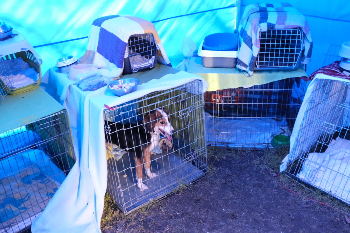Služeb vyhřívaného modrého stanu HZS ČR před pavilonem A Černé louky již od 8.3.2022 využilo několik desítek domácích mazlíčků, hlavně psů a jen několik koček. Mnohdy netrpělivě čekají v klecích či v náručí pracovníka Psího útulku Ostrava, až si jejich páníčci vyřídí vše potřebné.