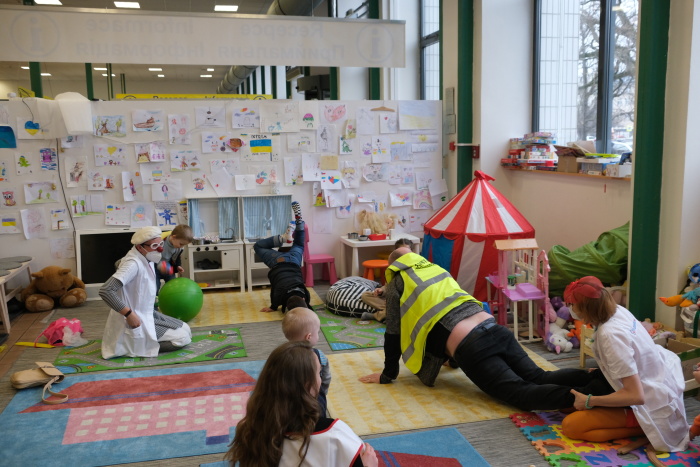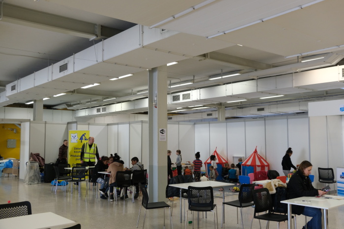 V relaxační/odpočinkové části, oddělené dveřmi, chodbou a schodištěm, jsou připraveny desítky rozkládacích lůžek a několik stovek židlí se stoly. Zde je opravdu klid a viditelně malý počet osob. Například v noci z neděle na pondělí ale byla využita většina lůžek. Stále využívány jsou ale oba dětské koutky, jeden v registrační a druhý v odpočinkové části.