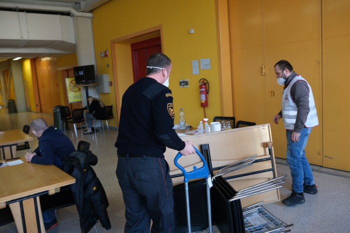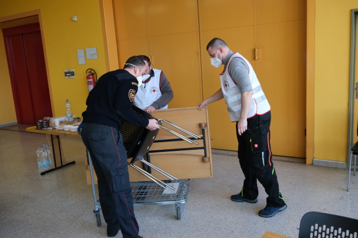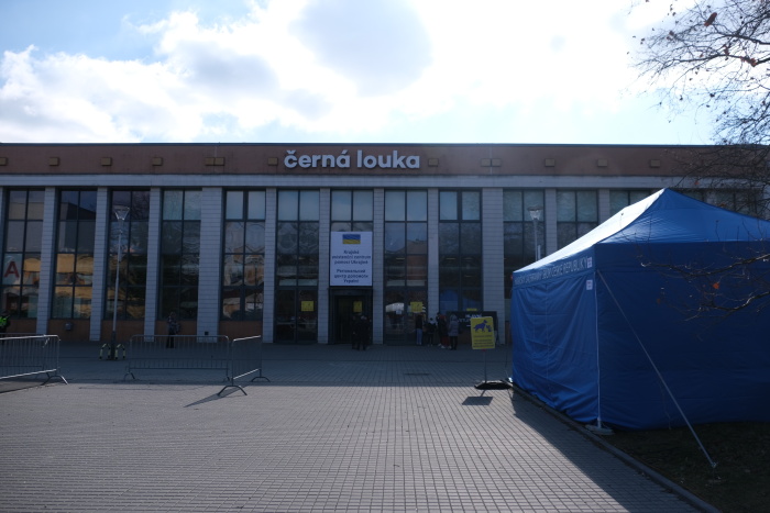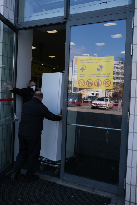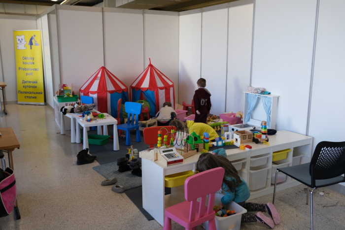 Profesionální hasiči řeší konkrétní problémy s chodem centra, ve čtvrtek třeba s novou chladničkou pro bufet či se stěhováním stolů a židlí, odpovídají i s dalšími asistenty na dotazy Ukrajinců či jejich českého doprovodu, museli pro ně přinést během úterního dopoledne dvě desítky lůžek, a ještě více židlí. V modrém stanu HZS ČR před pavilonem je připraveno zázemí pro „ukrajinské“ psy a kočky, včetně klecí, žrádla, pitné vody, misek, hraček…