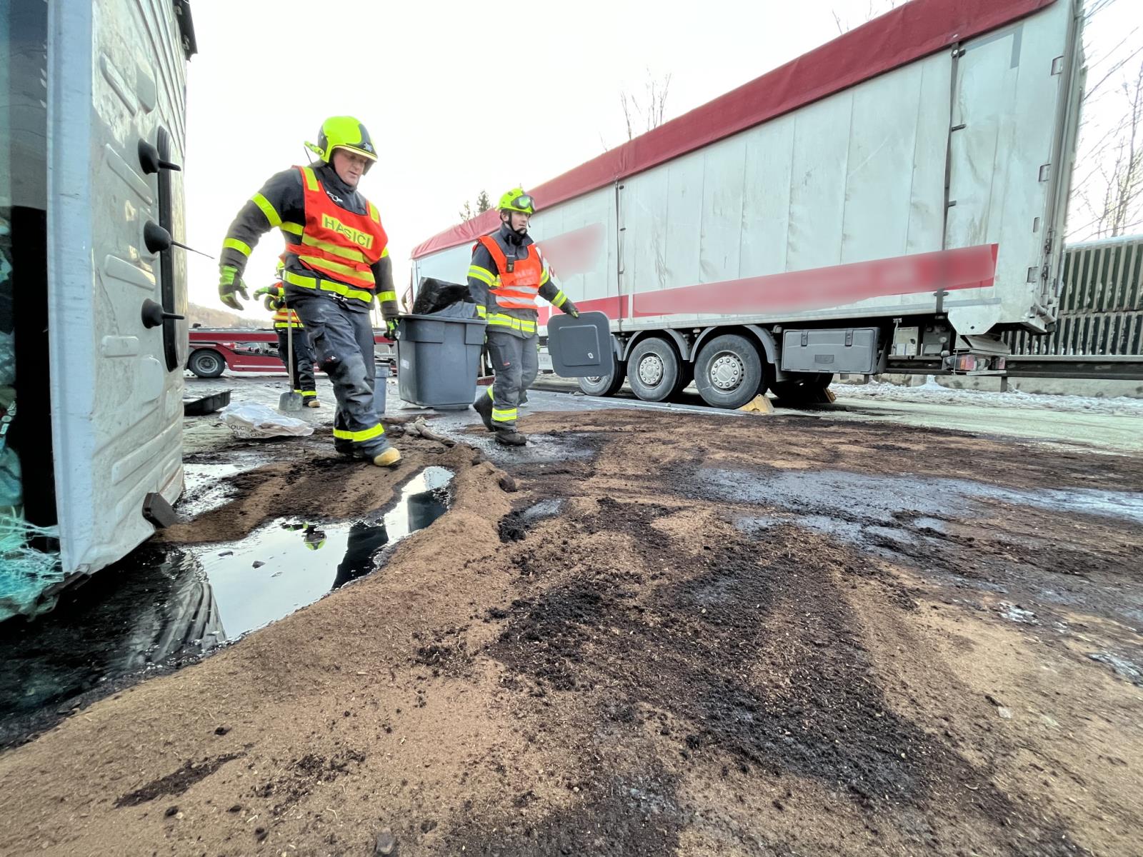 Na místo nehody si velitel zásahu vzhledem k okolnostem úniku ropných produktů povolal i zástupce České inspekce životního prostředí, neboť i přes veškerou snahu hasičů byly pohonné hmoty havarovaných vozidel rozteklé po silnici v délce 100 metrů.