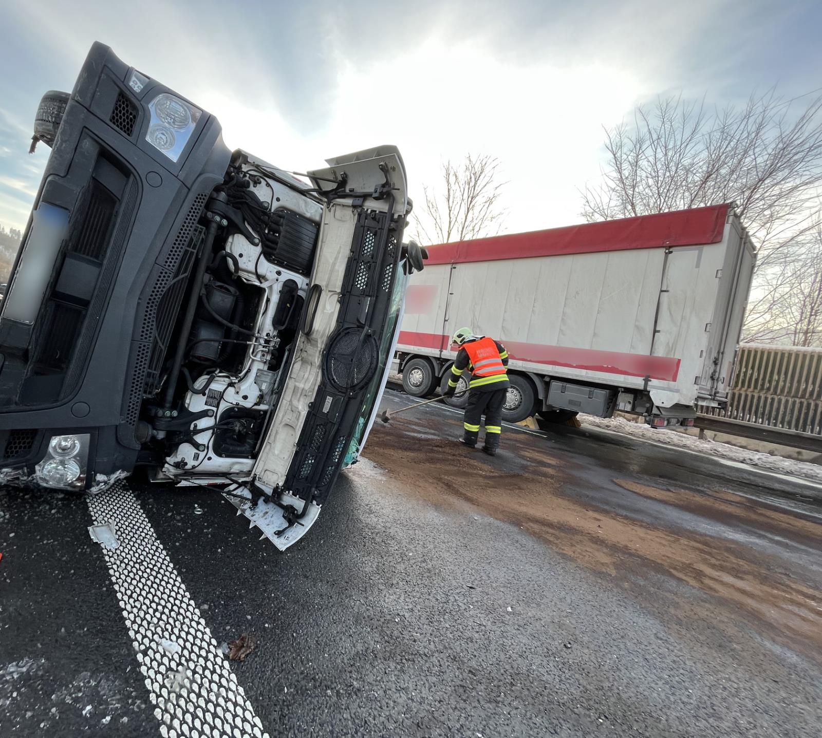 Minutu po 14. hodině uzavřela havárie dvou nákladních automobilů, z nichž jeden přepravoval na vleku třetí nákladní automobil, silnici I/11, na úrovni obce Mosty u Jablunkova, na několik hodin. U nehody byla zraněna jedna osoba. Hasiči museli jímat velké množství uniklých pohonných hmot.