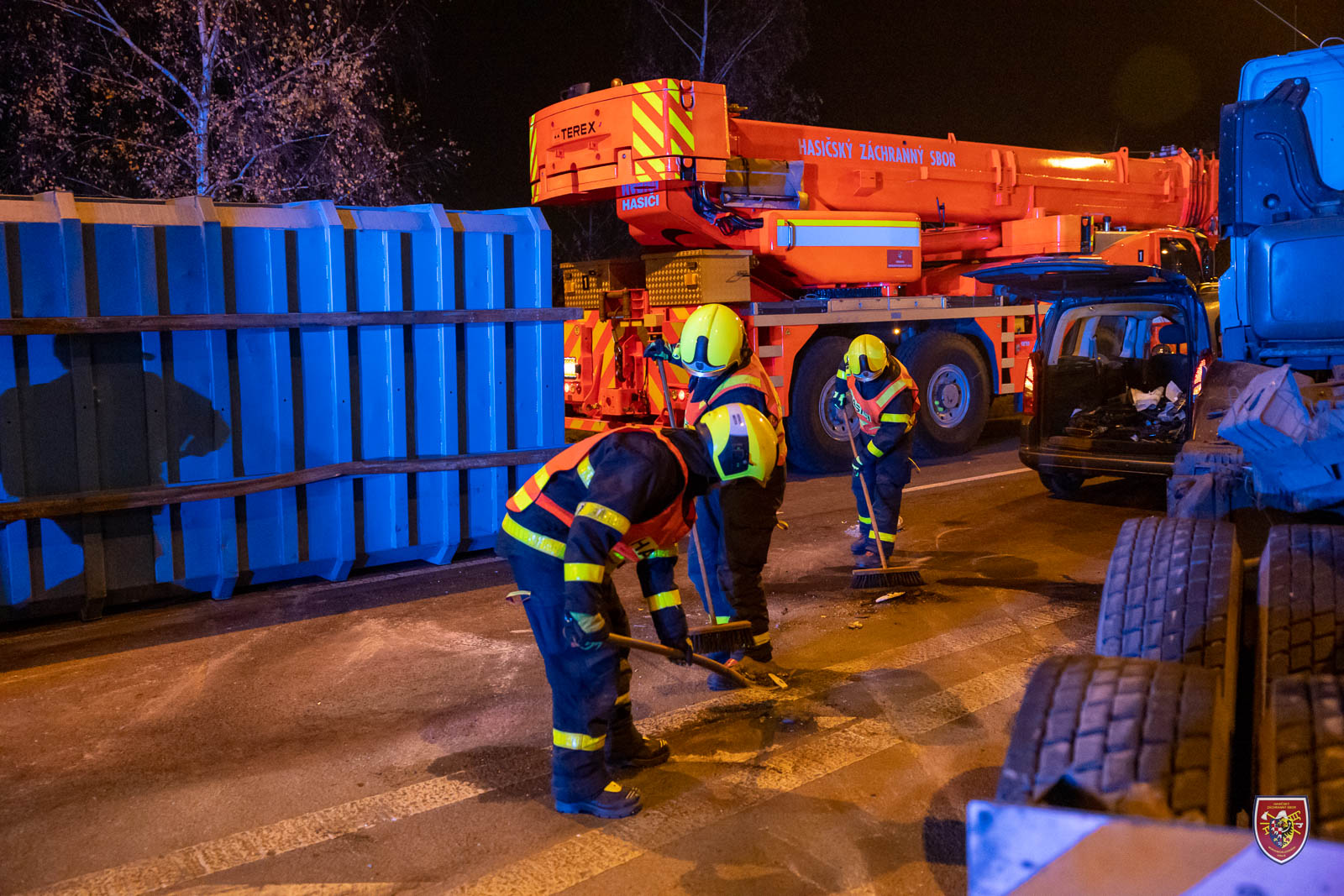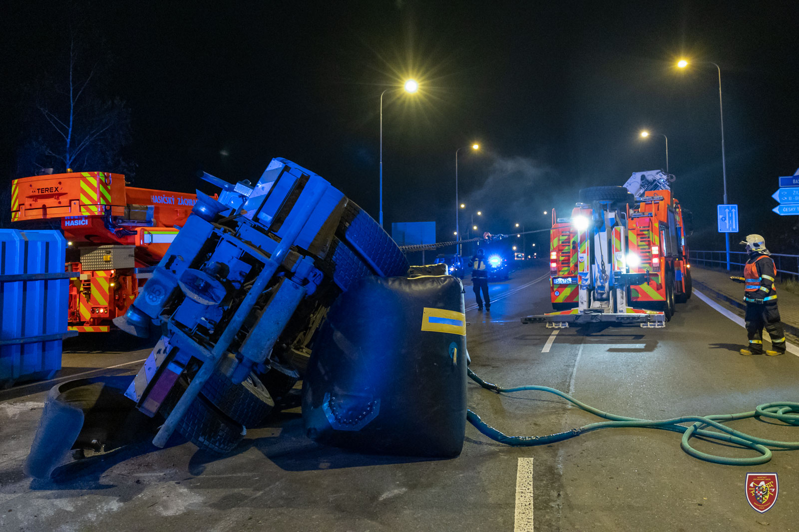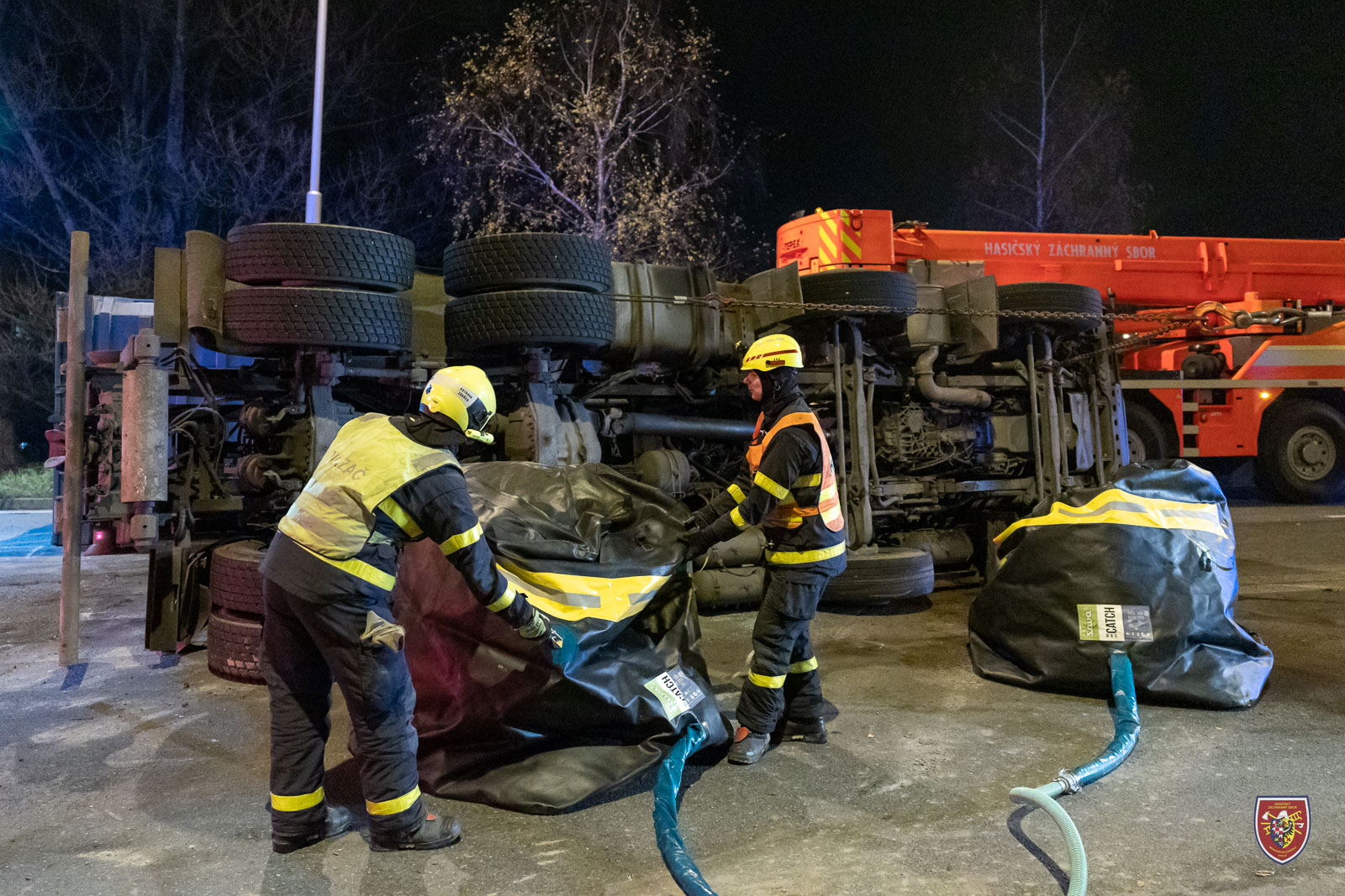 Pro bezpečnou a kontrolovanou manipulaci využili nízkotlaké vaky, na které automobil položili a spustili ho pomalu na zem. Nákladní vůz se po krátké chvíli podařilo nastartovat a krátce po půl sedmé tak bylo možné frekventovanou komunikaci uvolnit.
