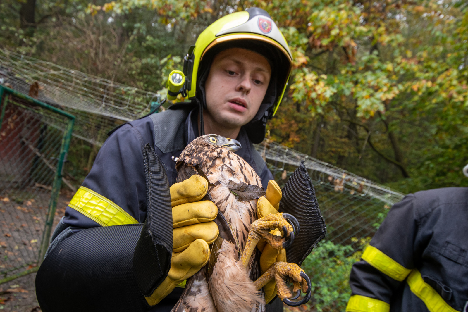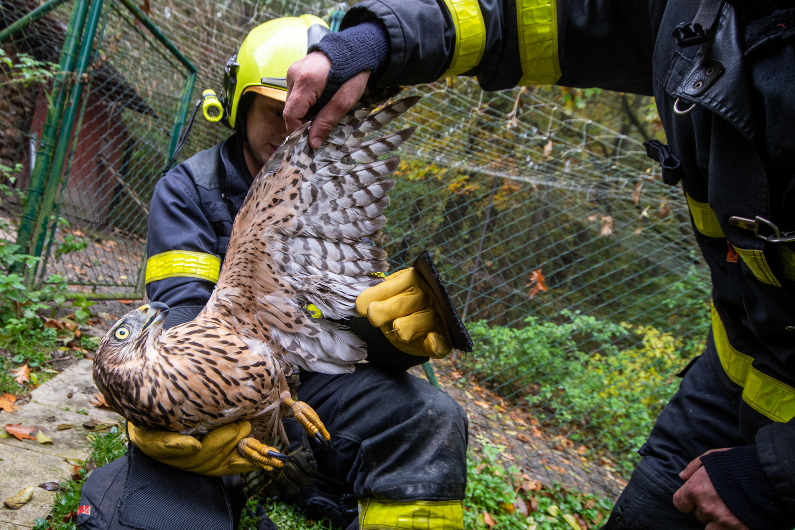 Profesionální hasiči z ostravské stanice Přívoz zasahovali ve čtvrtek 24. října dopoledne u záchrany mladého dravce v městské části Michálkovice.