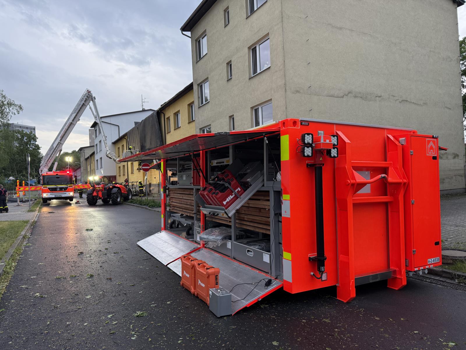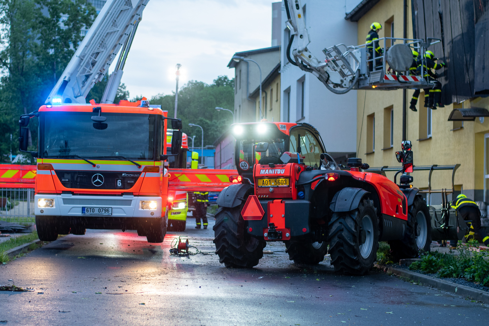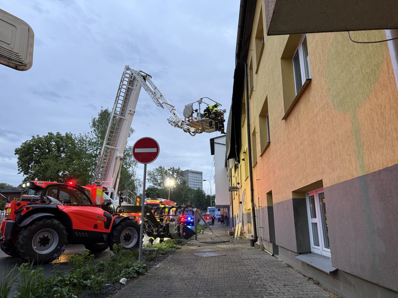 Informace o události přijala tísňová linka okamžitě a vyslala profesionální i dobrovolné jednotky. Kromě místních hasičů přijela i specializovaná jednotka z Nového Jičína vybavená zastřešovacím kontejnerem. Práce na střeše probíhaly za pomoci výškové techniky i vycvičených hasičských lezců, kteří odstranili poškozenou krytinu a instalovali krycí plachty, aby zabránili dalším škodám.