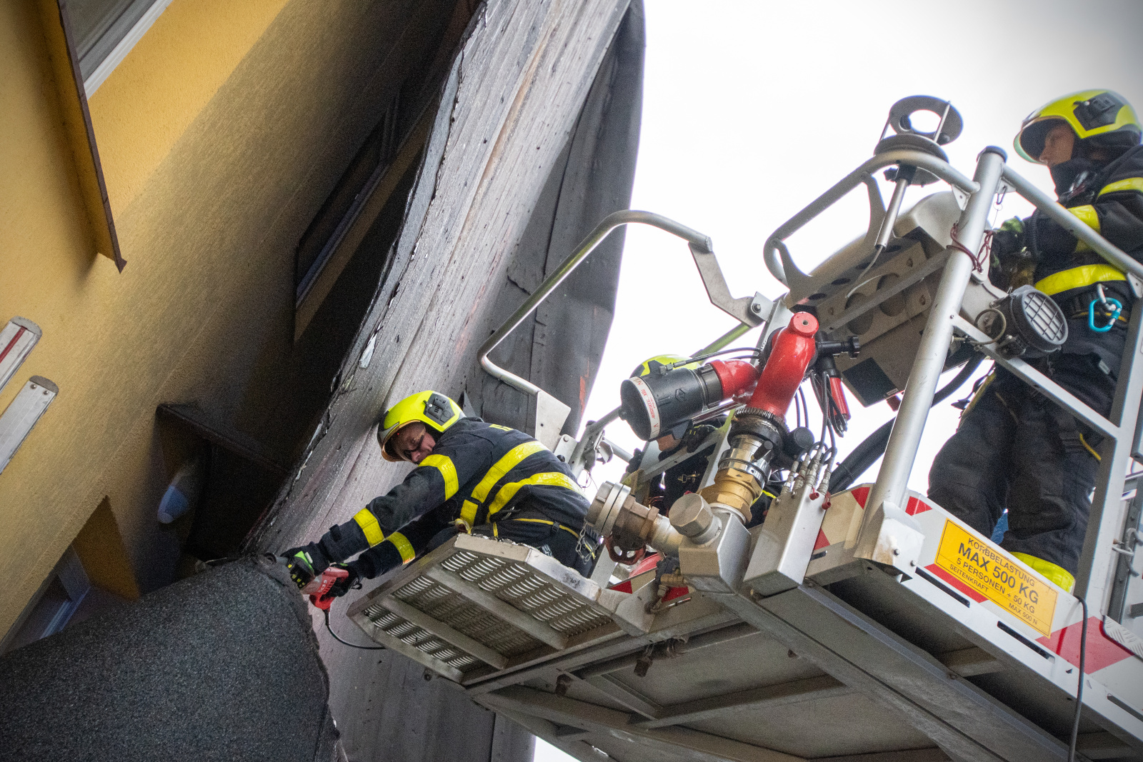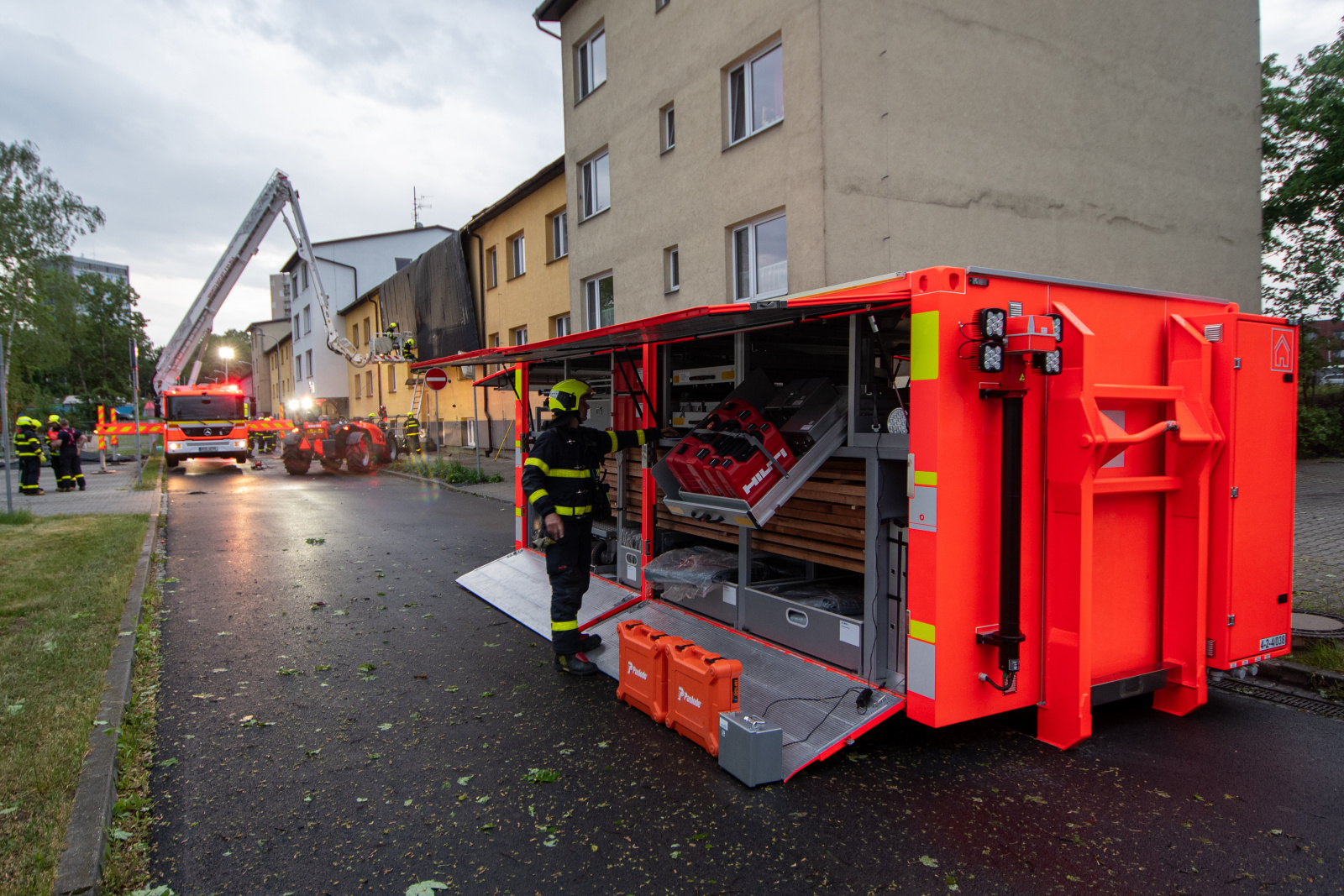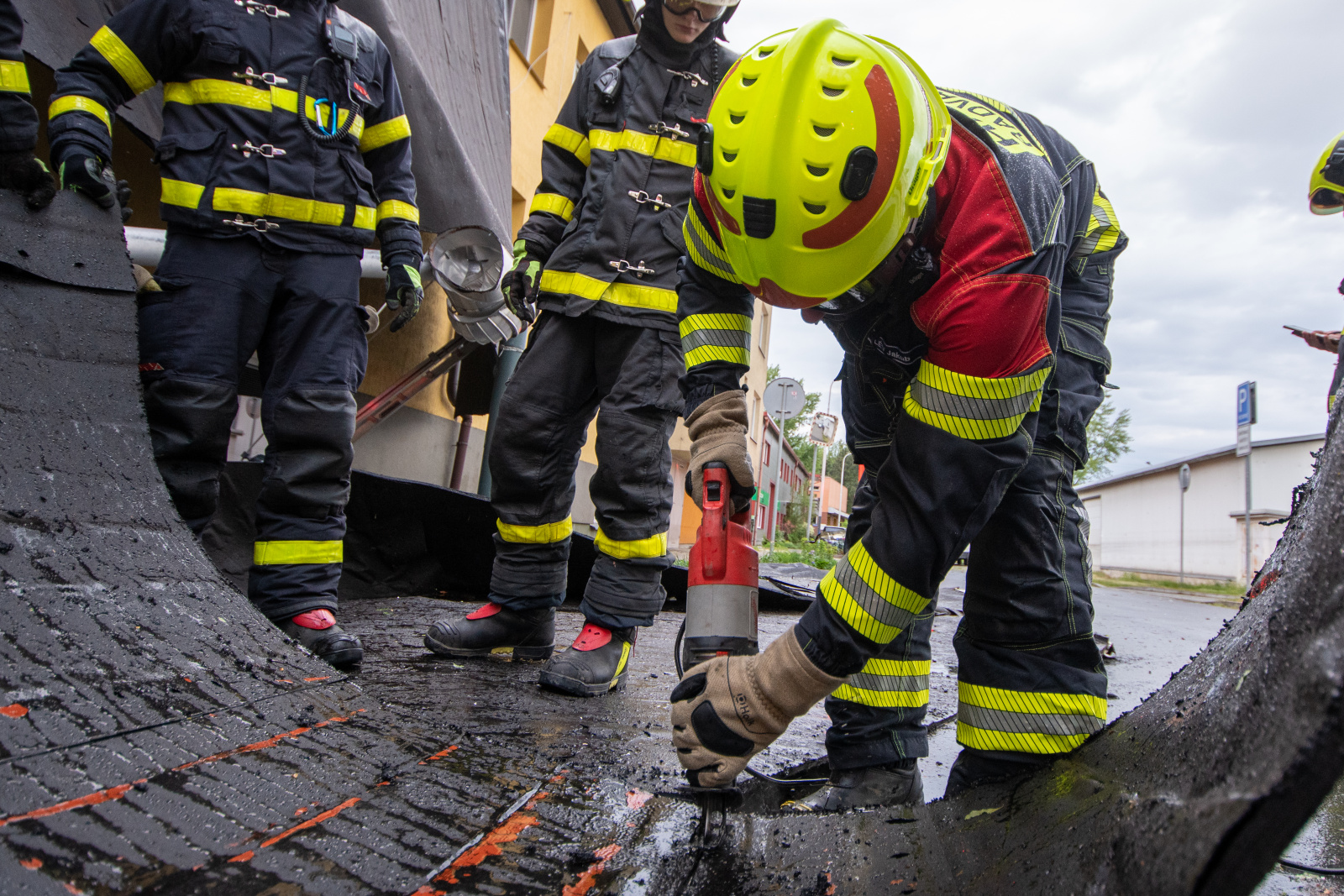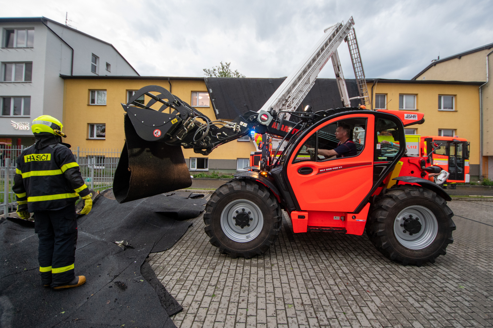 Informace o události přijala tísňová linka okamžitě a vyslala profesionální i dobrovolné jednotky. Kromě místních hasičů přijela i specializovaná jednotka z Nového Jičína vybavená zastřešovacím kontejnerem. Práce na střeše probíhaly za pomoci výškové techniky i vycvičených hasičských lezců, kteří odstranili poškozenou krytinu a instalovali krycí plachty, aby zabránili dalším škodám.
