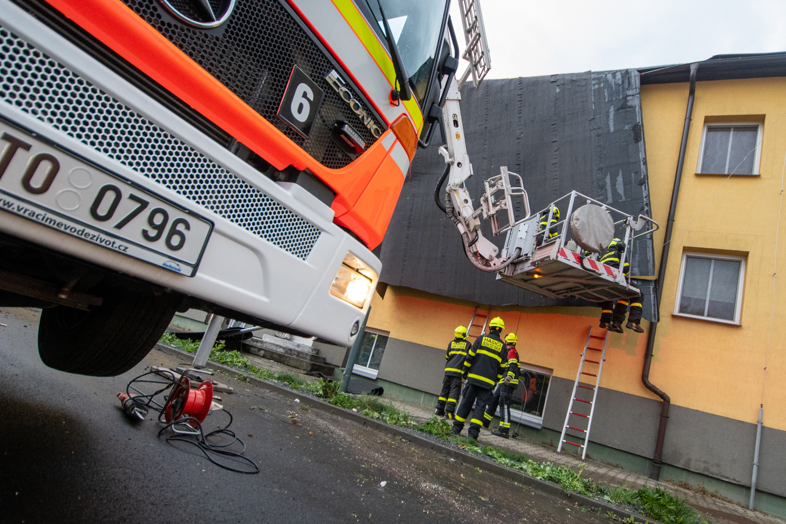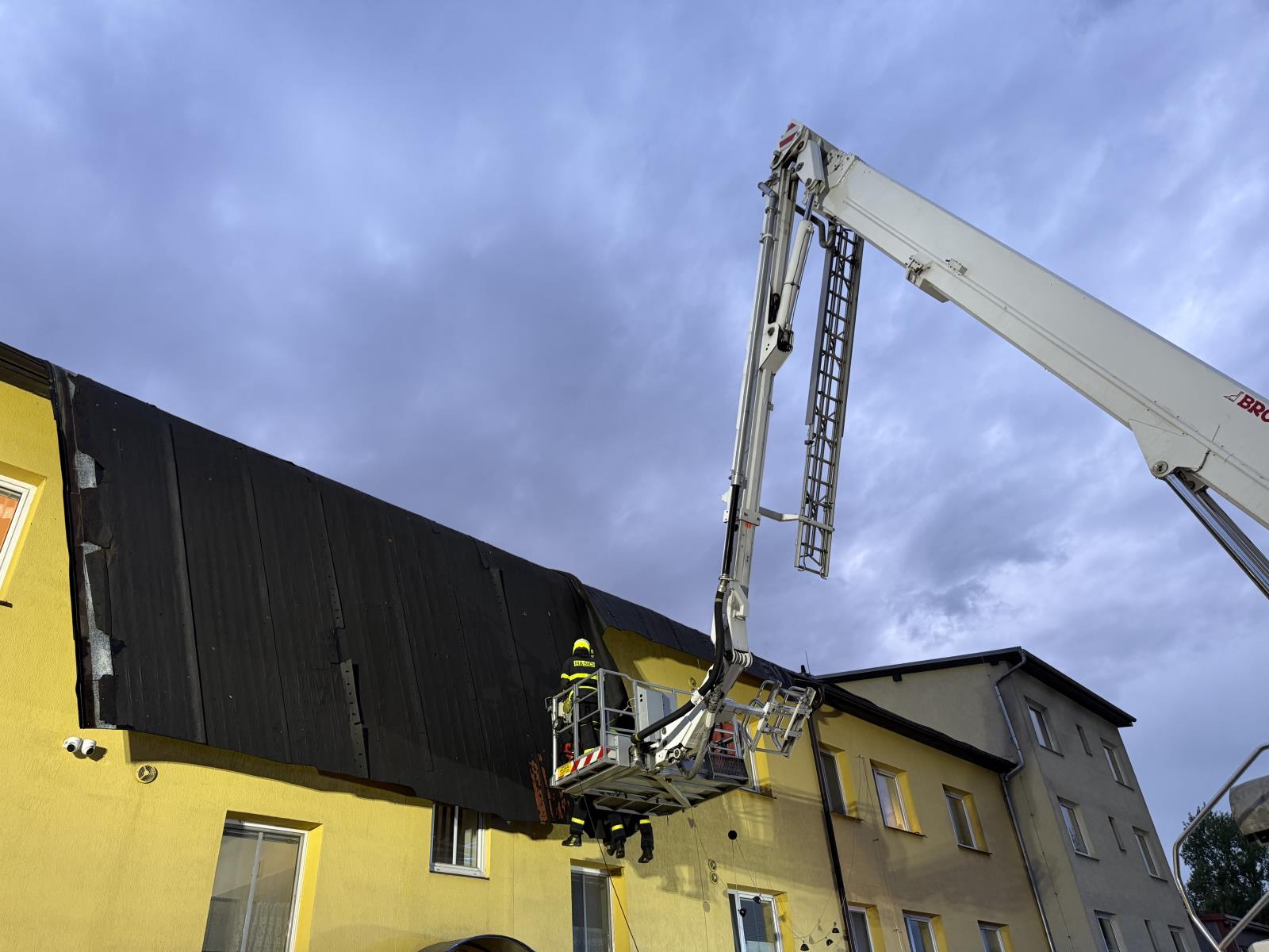 Vítr strhl střechu domova, zasahovali hasiči i lezci
