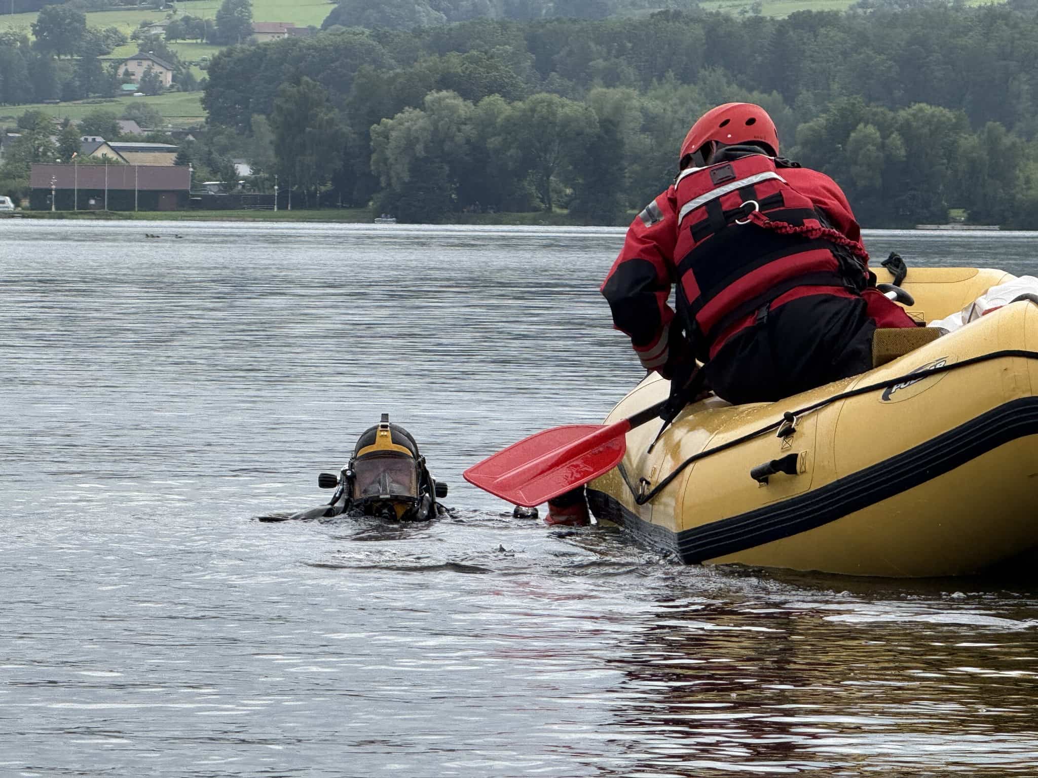 Kvůli úplnému ponoření vozidla pod hladinu byli přivoláni také specializovaní potápěči ze Záchranného útvaru HZS ČR, kteří se zabývají právě technicky náročnými zásahy ve vodním prostředí.