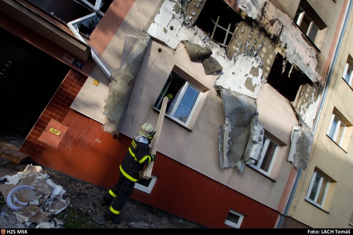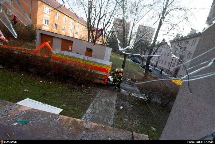 Ve středu ráno (za denního světla) zde jednotka HZS MSK ze stanice Ostrava-Zábřeh přivezla – kvůli stabilizaci přízemí a prvního patra poškozeného vchodu – dva technické kontejnery, z toho jeden plný různých dřevěných hranolů. Pažení obou pater zabere hasičům několik hodin.