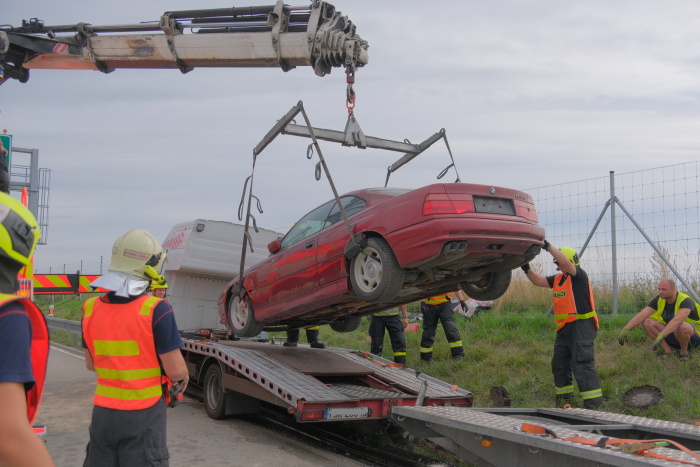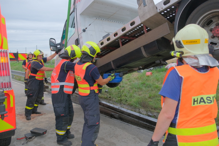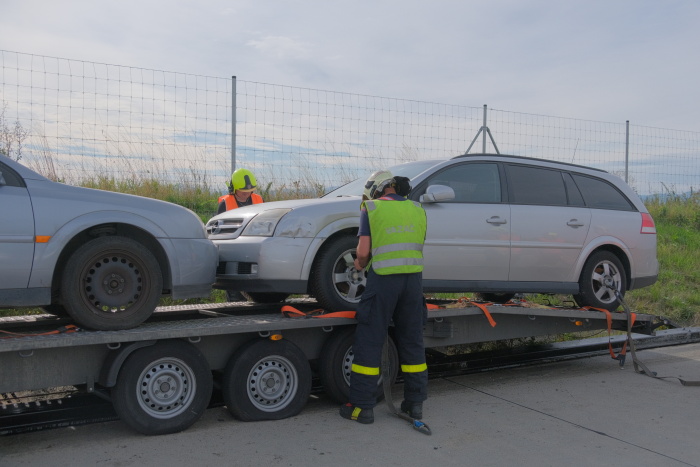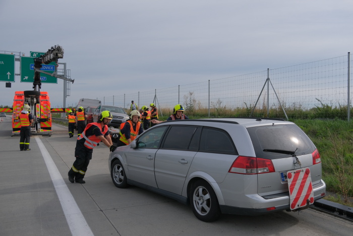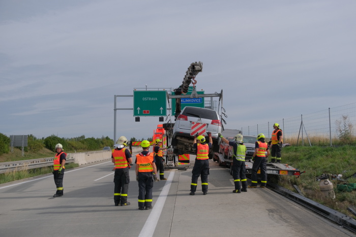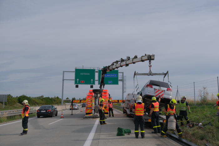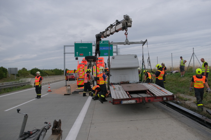 Tři jednotky hasičů zasahovaly v neděli 18.8.2019 ráno a dopoledne na dálnici D1 u Bílova (okres Nový Jičín) ve směru na Ostravu a Polsko u nehody menšího nákladního automobilu Iveco, který vezl na návěsu i na přívěsu celkem tři starší a poškozené osobní automobily. Hasiči museli postupně vytáhnout pomocí hydraulické ruky speciálu Bizona a položit na kola na okraj dálnice všechna čtyři vozidla.