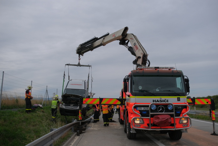 Nehoda polského vozidla se obešla bez zranění. Dálnice D1 ve směru na Ostravu a Polsko zde byla během celého zásahu průjezdná levým pruhem, hasiči usměrňovali dopravu.