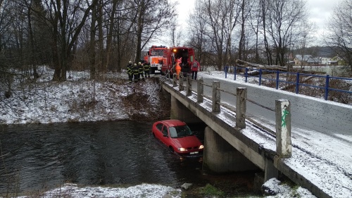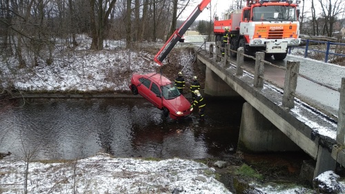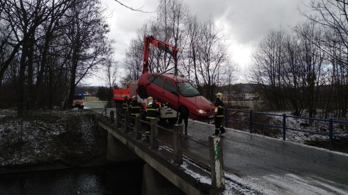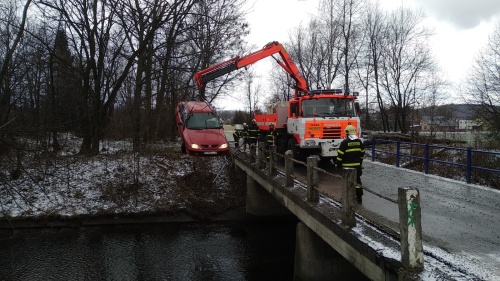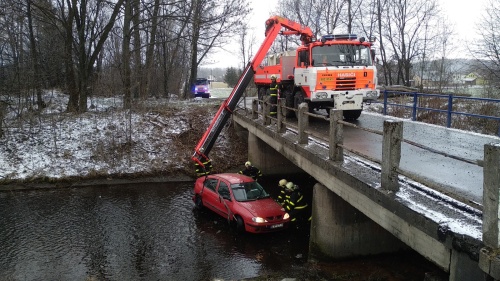 Tři jednotky hasičů a hlavně hydraulická ruka vyprošťovacího speciálu HZS MSK z Frýdku-Místku se zapojily v úterý 12.2.2019 dopoledne do úspěšného vylovení osobního automobilu Renault Megane, který skončil ve Vyšních Lhotách (okres Frýdek-Místek) pod mostem v přivaděči do vodní nádrže Žermanice. Řidička středního věku se zranila, ale dokázala z auta vylézt ještě před příjezdem hasičů.