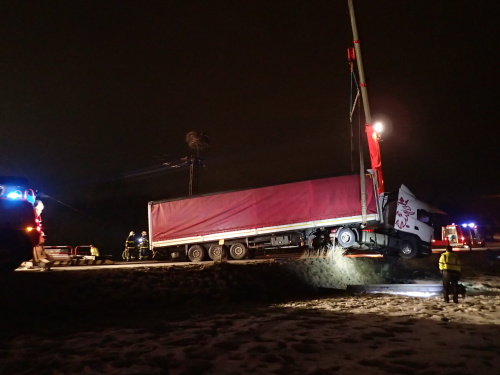 Vyprošťování kamionu blokujícího silnici v Ropici