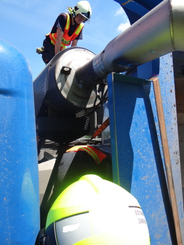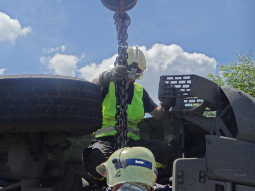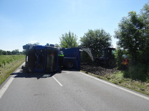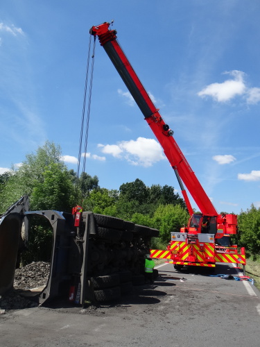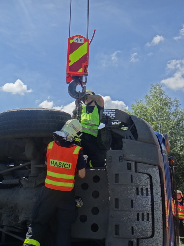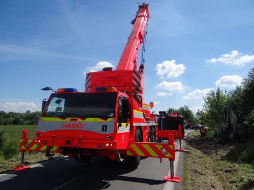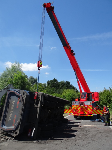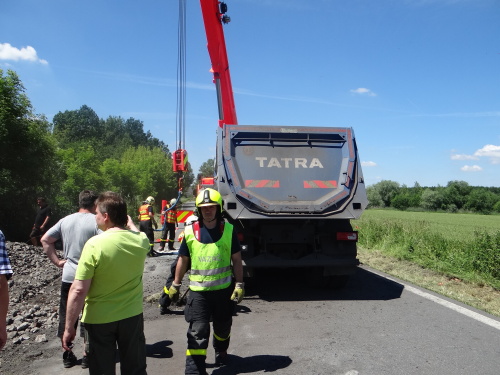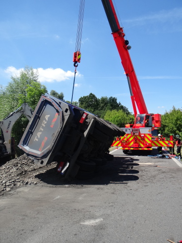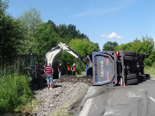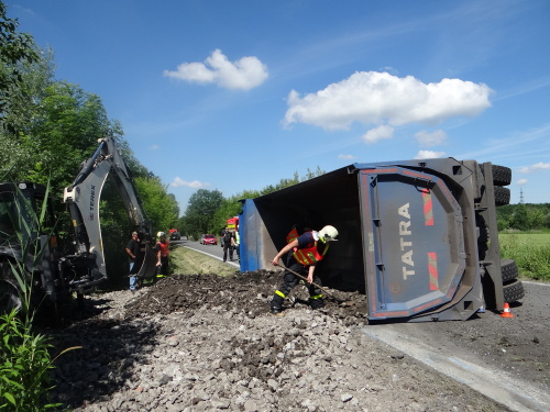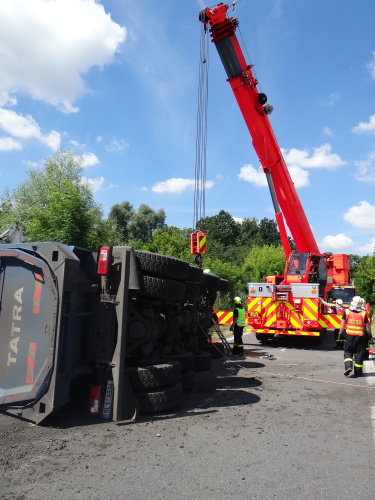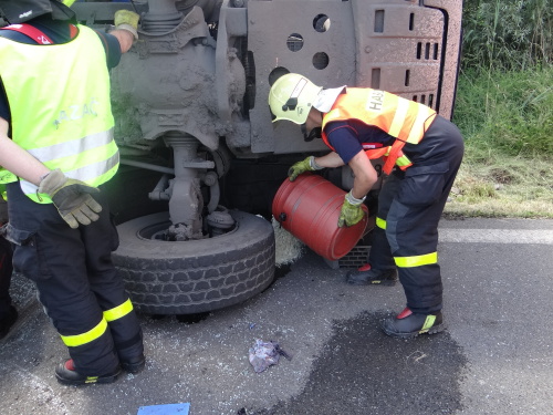 Při nehodě se z korby tatry vysypala část kamení, o vydolování další části z korby se postaral traktorbagr, čím ušetřil obvyklou práci hasičům. Ti se lopatami postarali až o spodní vrstvu kamení na korbě, kam už lžíce nedosáhla. Na menší únik provozních kapalin použili nasákavý sorbent.