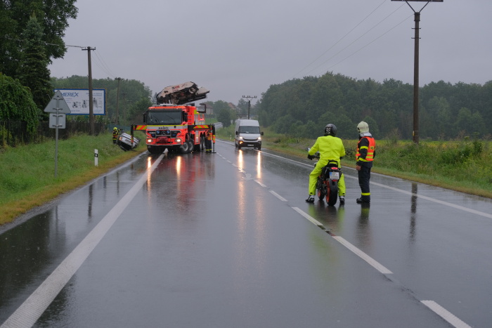 Vyprošťování octavie z příkopu u Staré Vsi nad Ondřejnicí