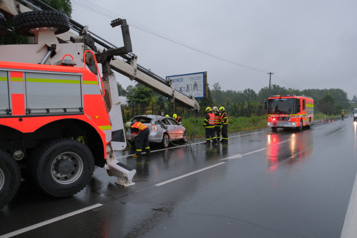 Operační středisko hasičů bylo o nehodě se zraněním řidiče mezi Starou Vsí nad Ondřejnicí a Krmelínem (poblíž zahradnictví Válek) ve směru na Mošnov informováno v úterý krátce před půl osmou ranní. Do Krmelínské ulice vyjely dvě ostravské jednotky HZS Moravskoslezského kraje – ze stanic Jih a Zábřeh – odtud i vyprošťovací speciál MB Actros Bizon. Ten bez problémů vytáhl havarovanou octavii na okraj silnice pomocí hydraulické ruky. Byla předána Polici ČR.