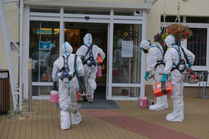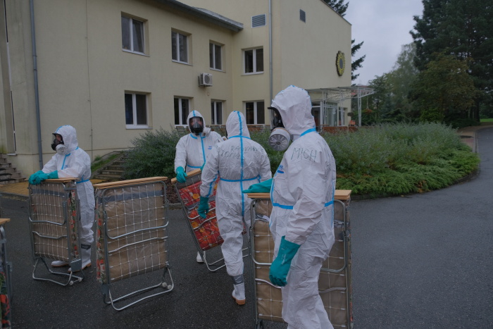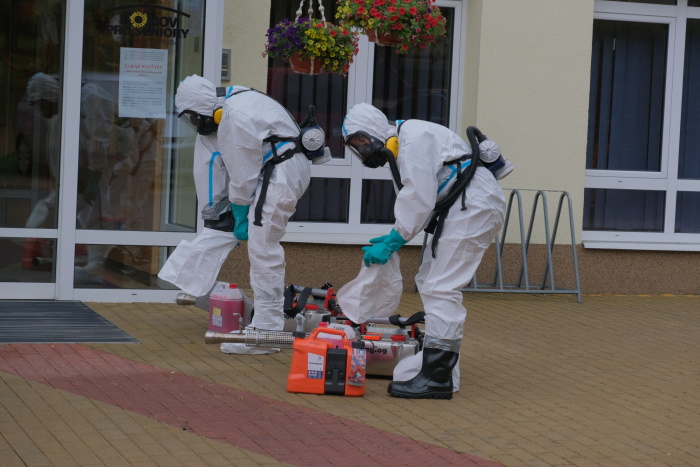 V první fázi museli hasiči v ochranných prostředcích během čtvrtečního odpoledne převézt několik klientů, pozitivních na covid-19, do jiných prostor, aby mohla plošná preventivní desinfekce začít ve zcela prázdném objektu, a to osvědčenými generátory teplého desinfekčního aerosolu